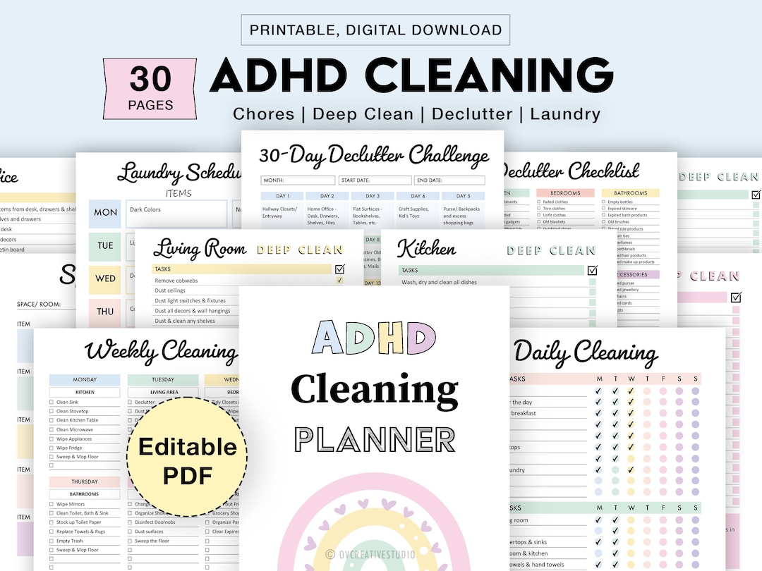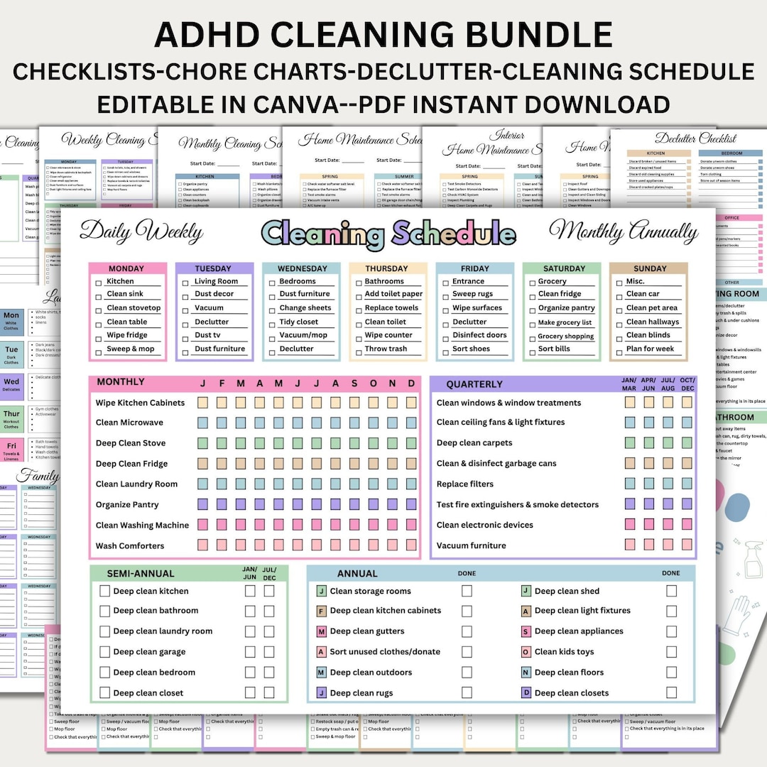 ADHD Cleaning Checklist Bundle Editable ADHD Cleaning Planner