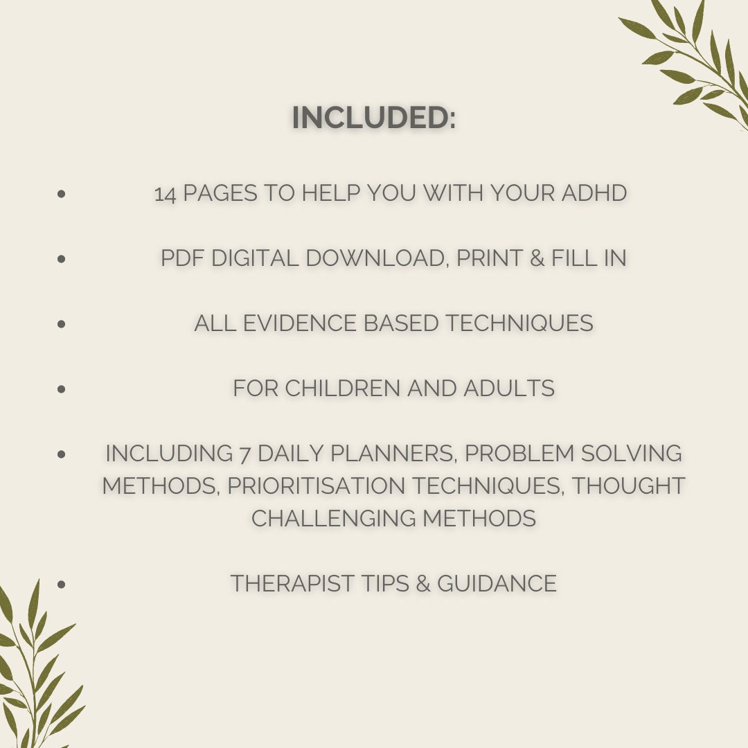 ADHD Printable Planner Adhd Worksheets CBT Worksheets Therapy
