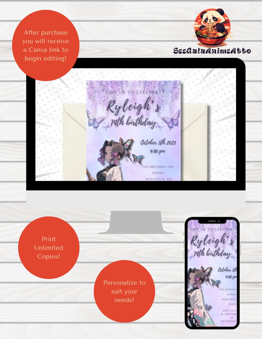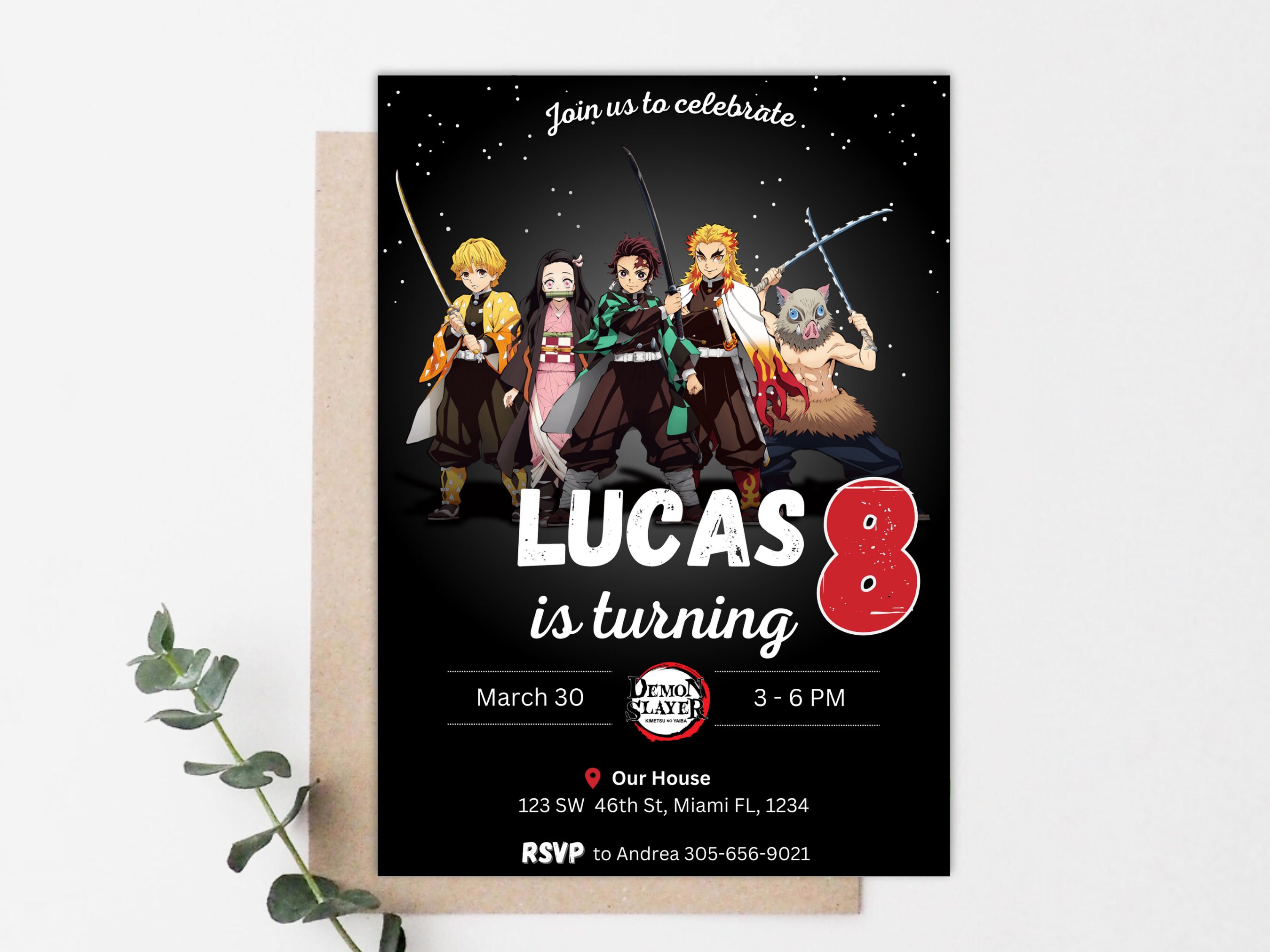 Printable Anime Birthday Invitation Slayer Birthday Party Invitation
