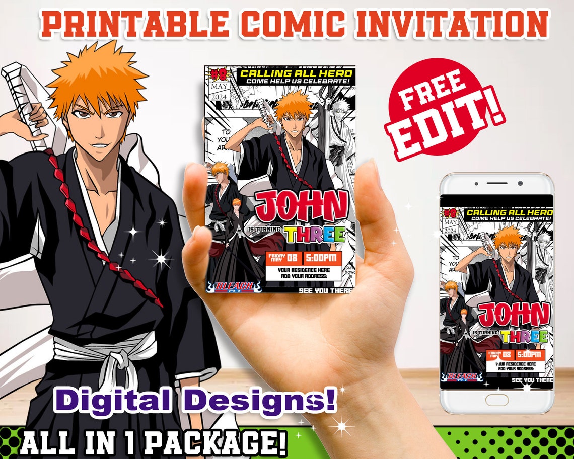 Printable Birthday Invitation B day Invite Editable Invitation Anime