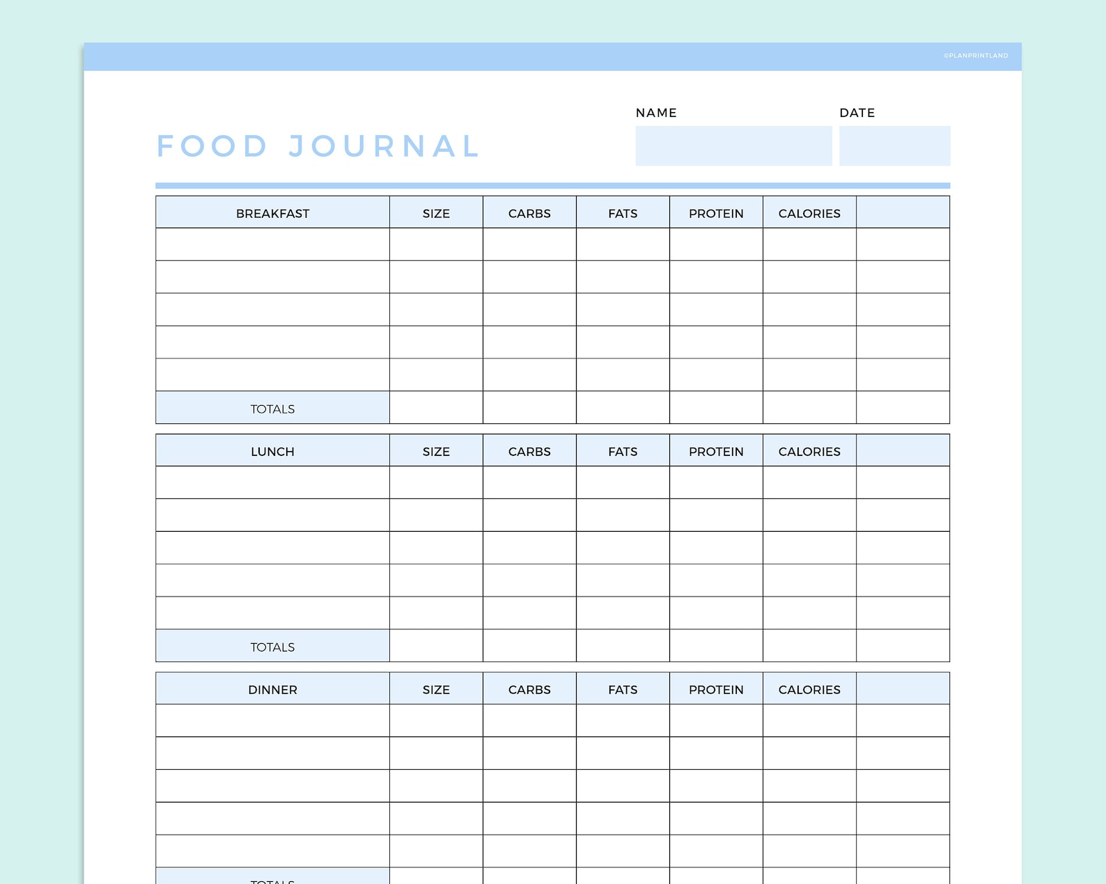 Daily Food Journal Printable Food Monitoring Log Daily Meal Planner