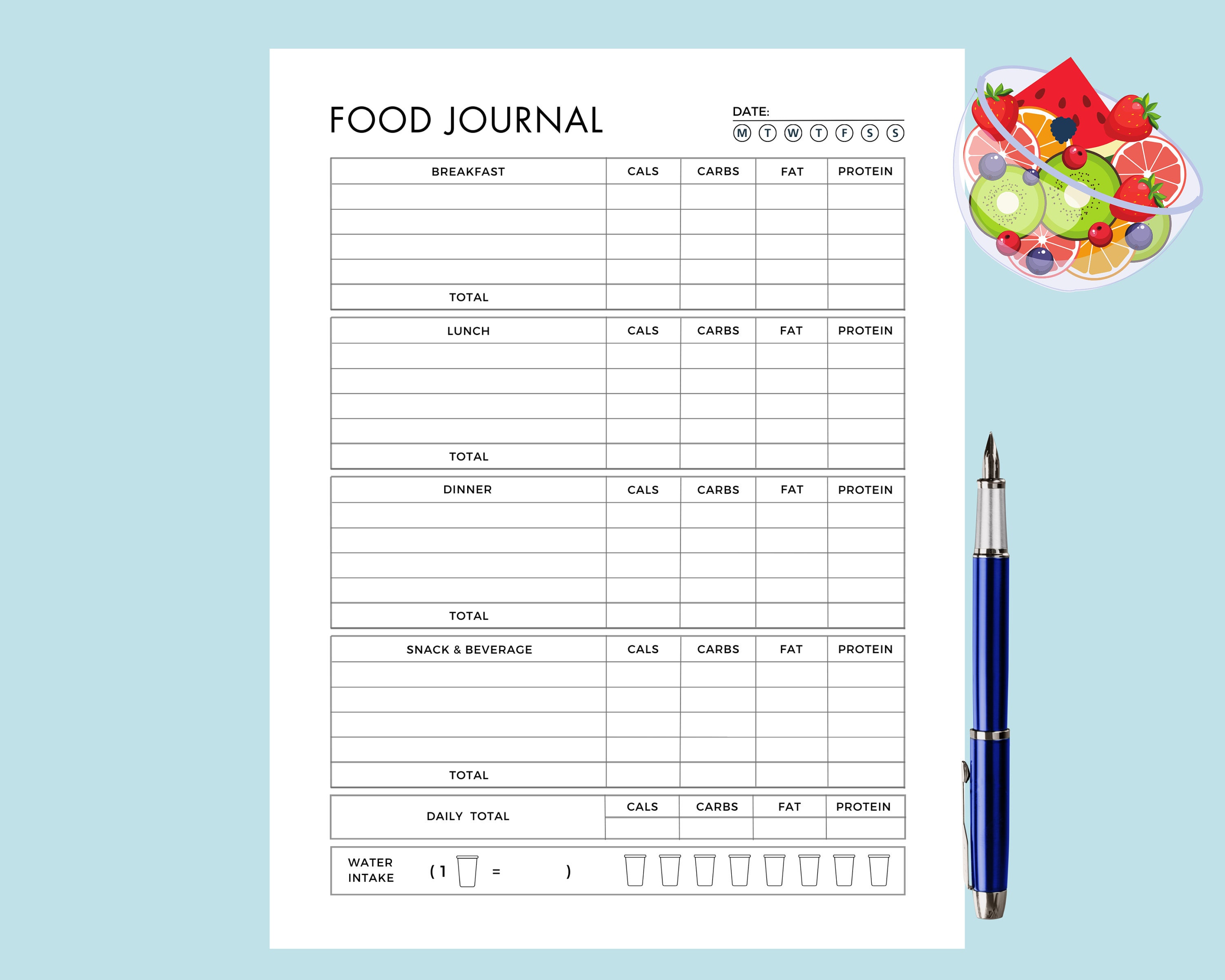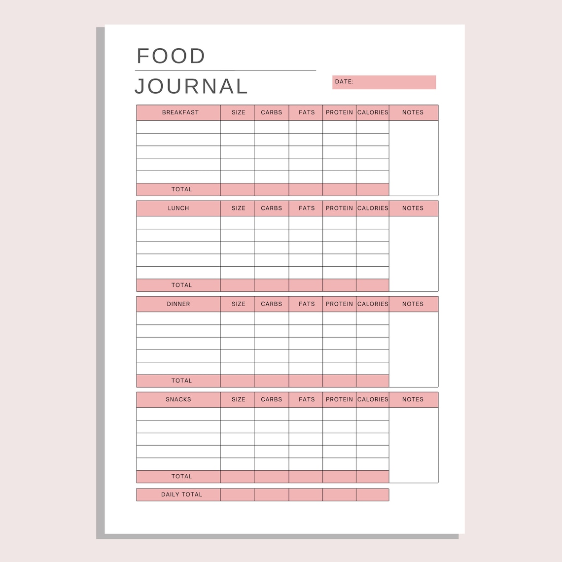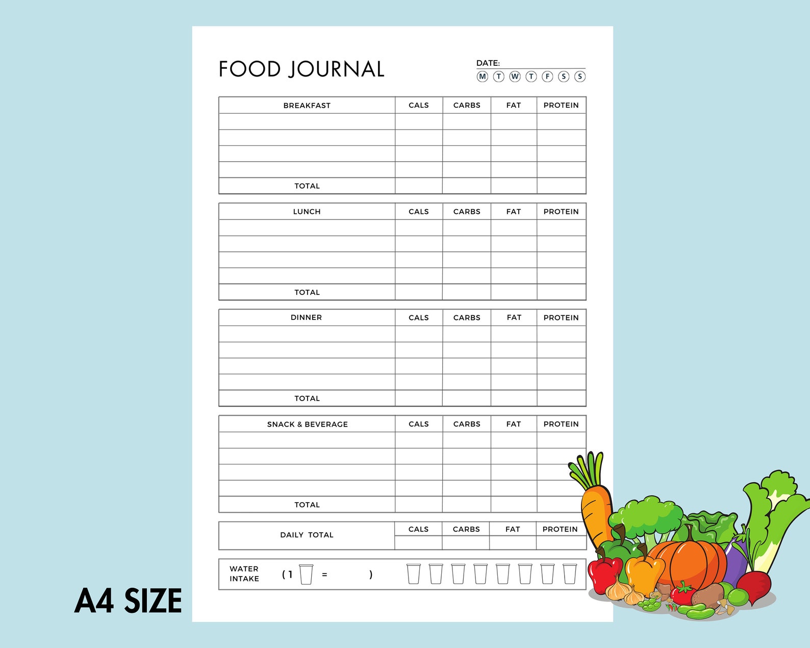 Food Journal Printable Meal Tracker Calorie Counting Log Meal