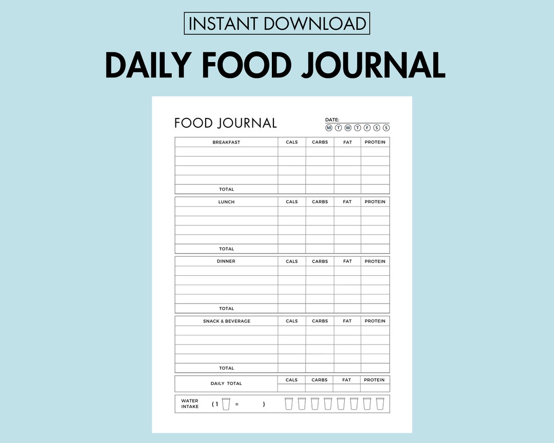 Printable Daily Food Journal Daily Food Diary Food Tracker Daily