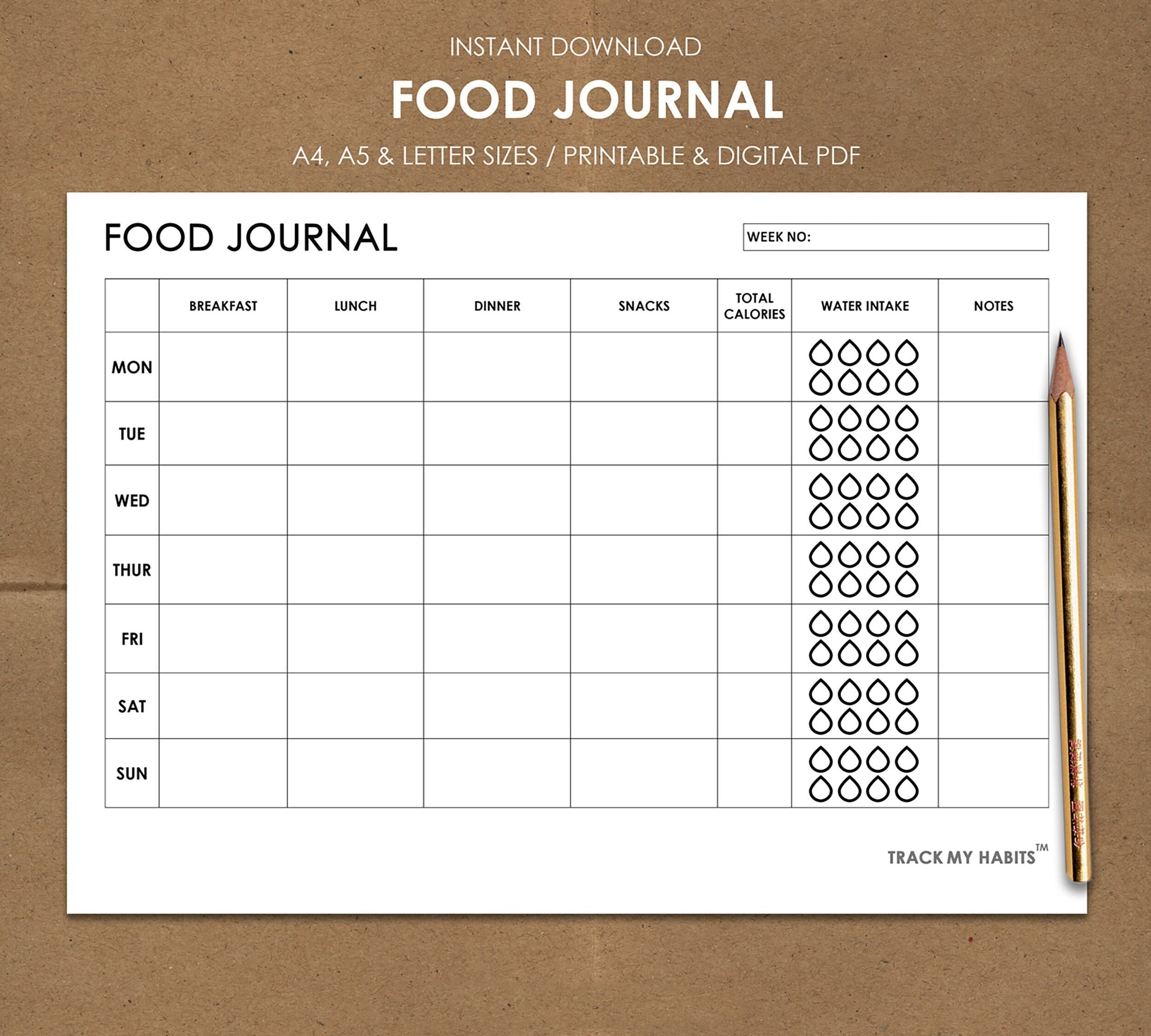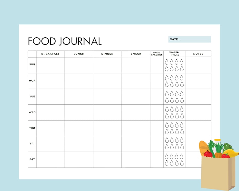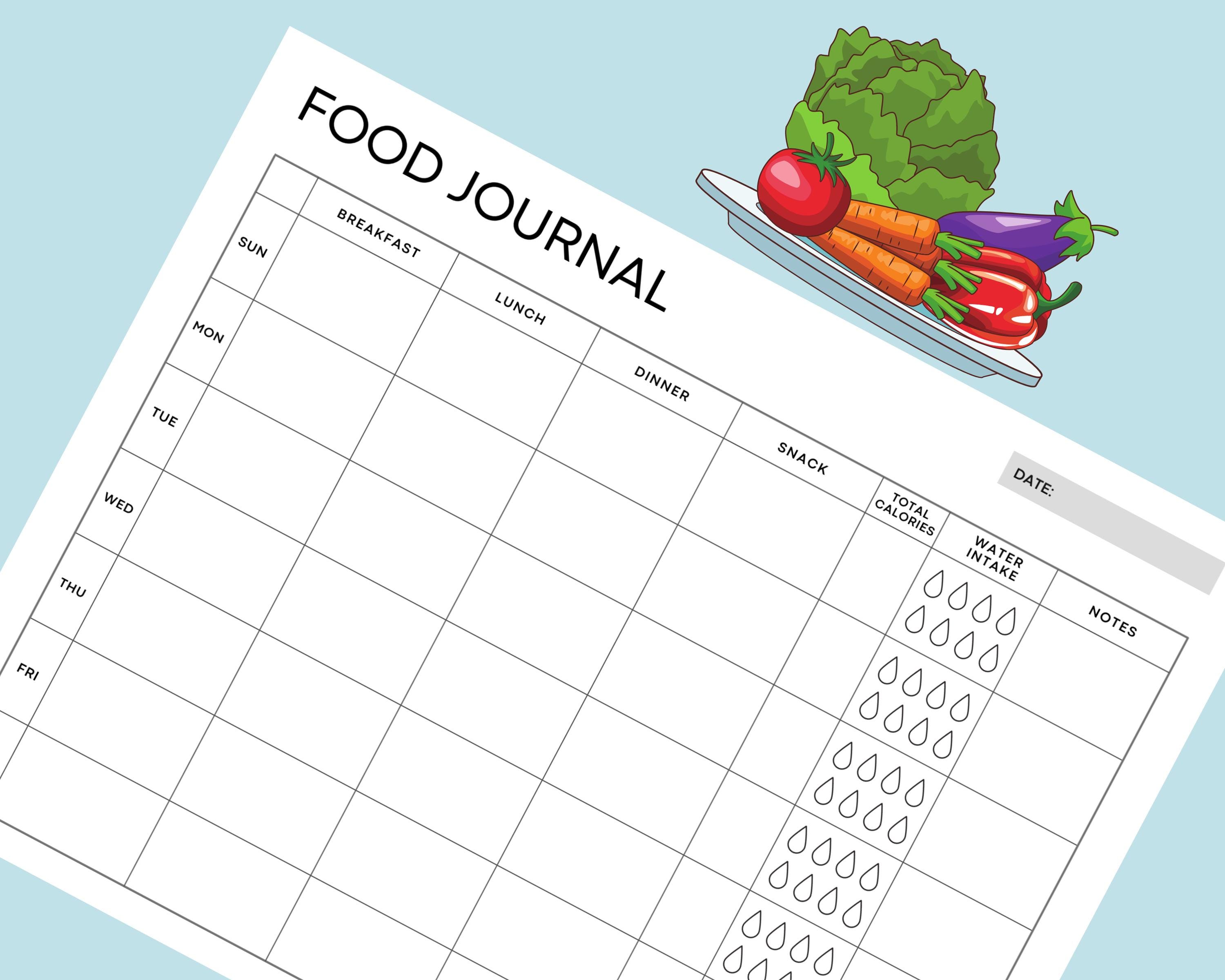 Minimalist Printable Food Journal Weekly Food Journal Hydration