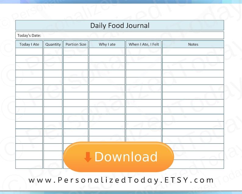 Printable Food Intake Eating Journal PDF Food Journal Tracker Etsy