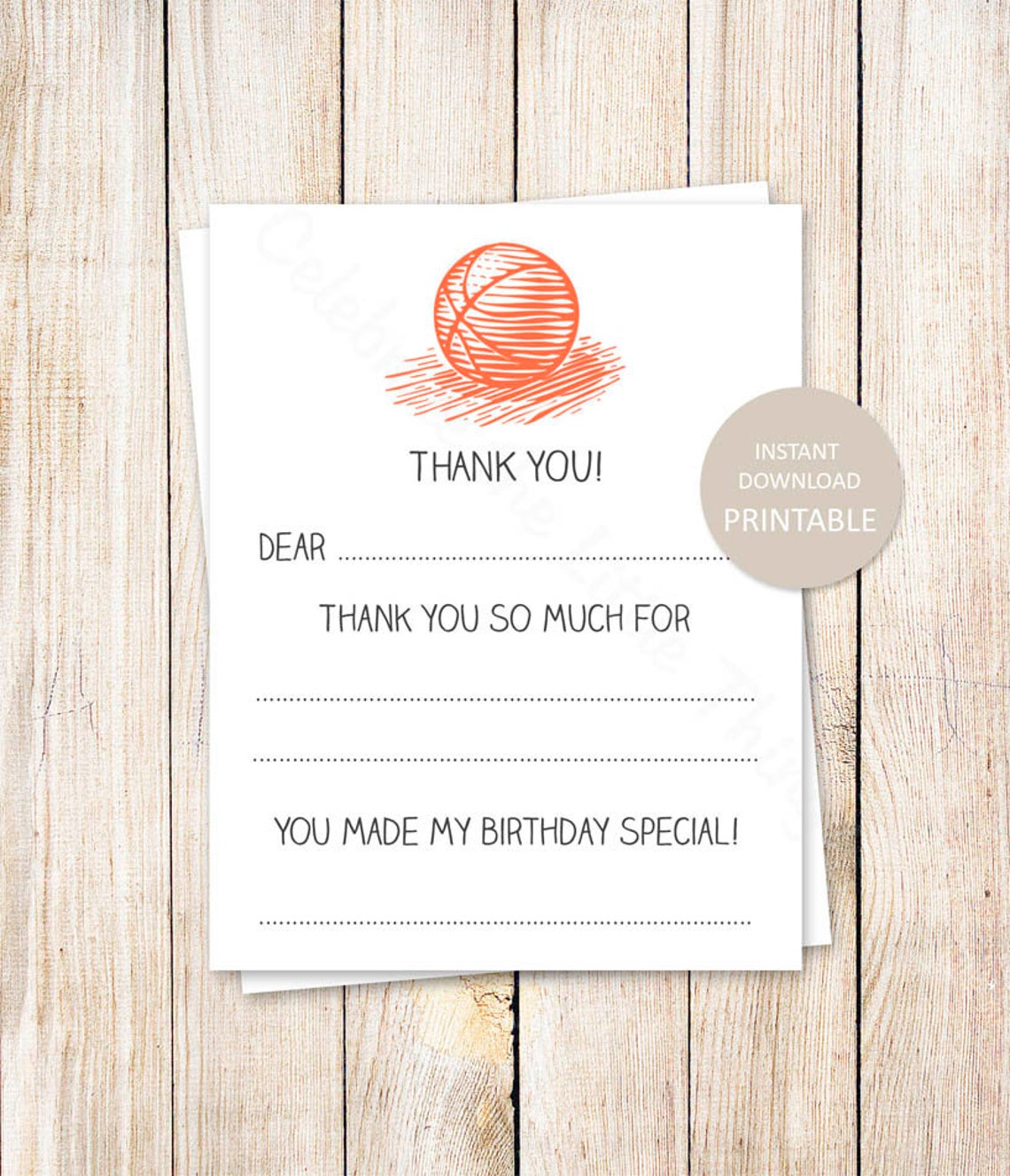 Basketball Thank You Card Printable Basketball Party Thank Etsy