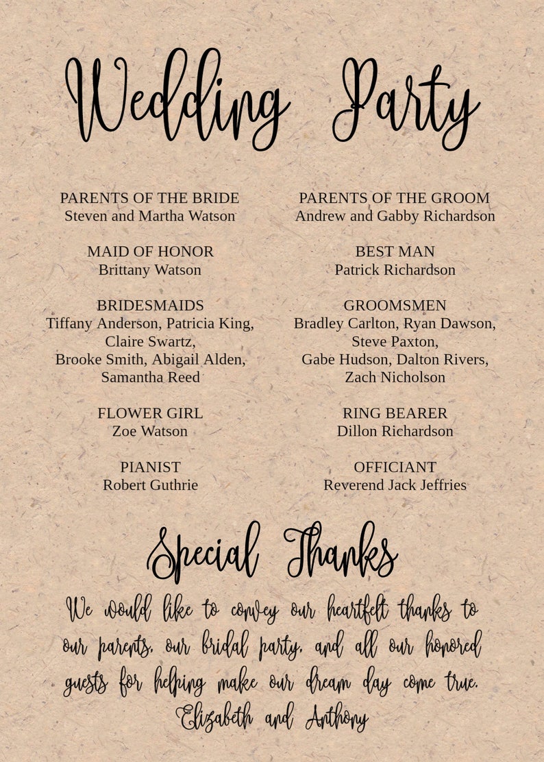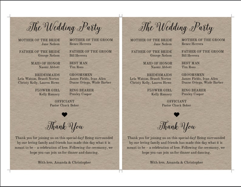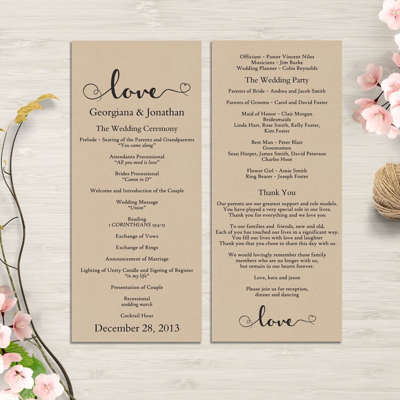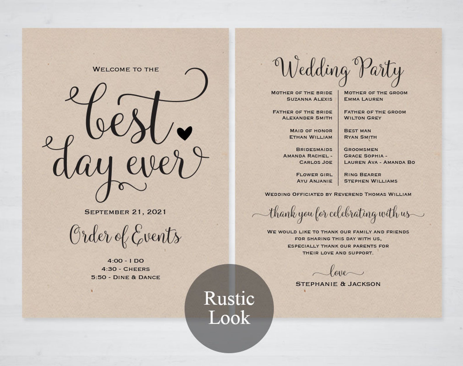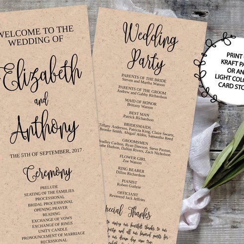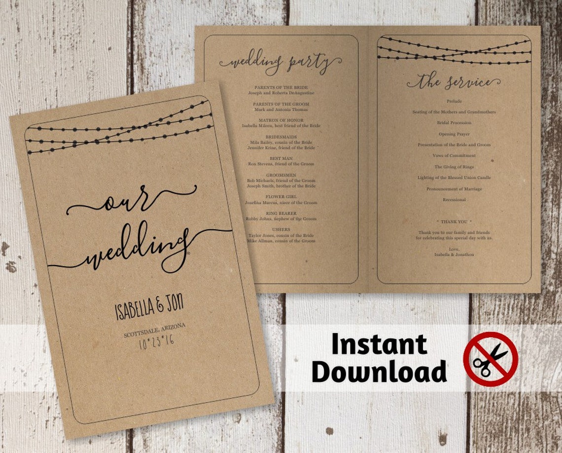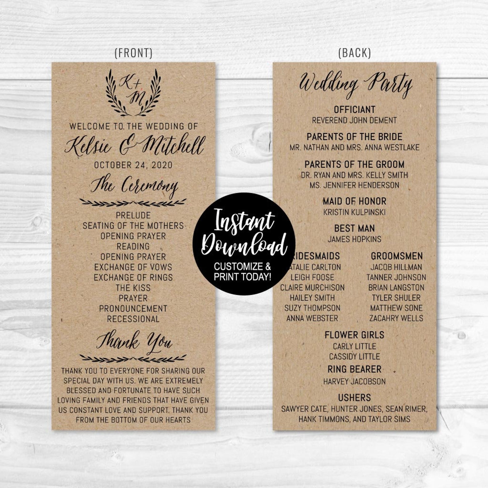 Rustic Wedding Program Template Calligraphy Printable Etsy