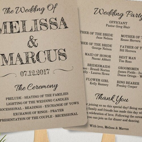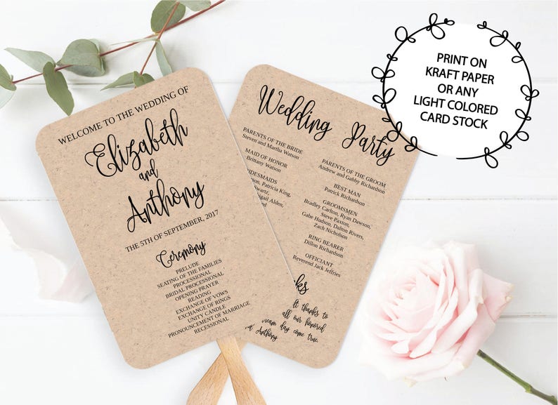 Editable Wedding Program Fan Template Modern Calligraphy Etsy