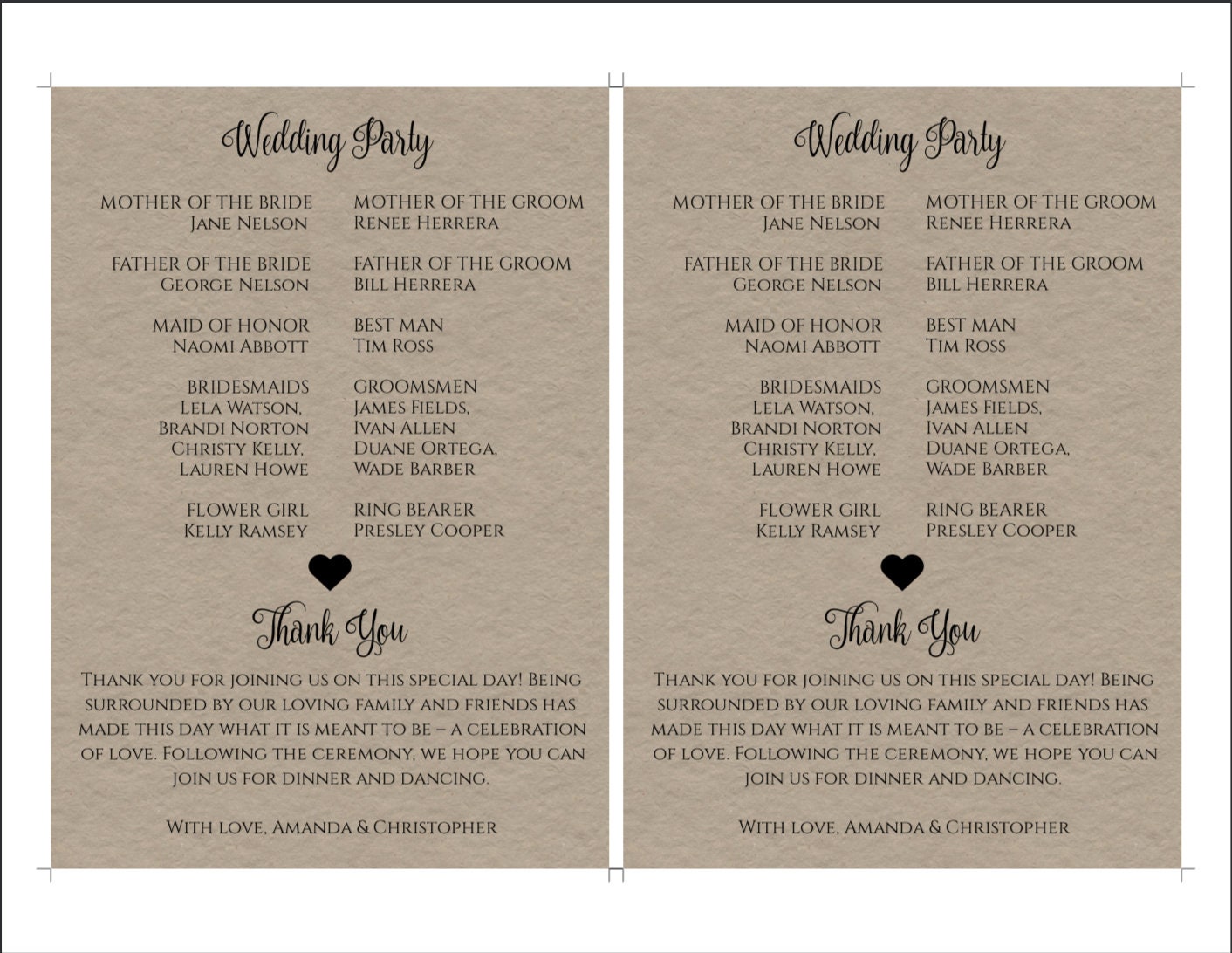 Wedding Program Template Printable / Editable 4x9 Etsy