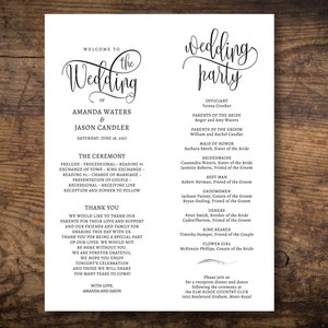 Wedding Program Template Printable / Editable 5x7 Calligraphy Script