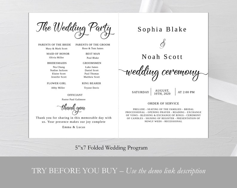 Wedding Program Template Printable / Editable 5x7 Etsy
