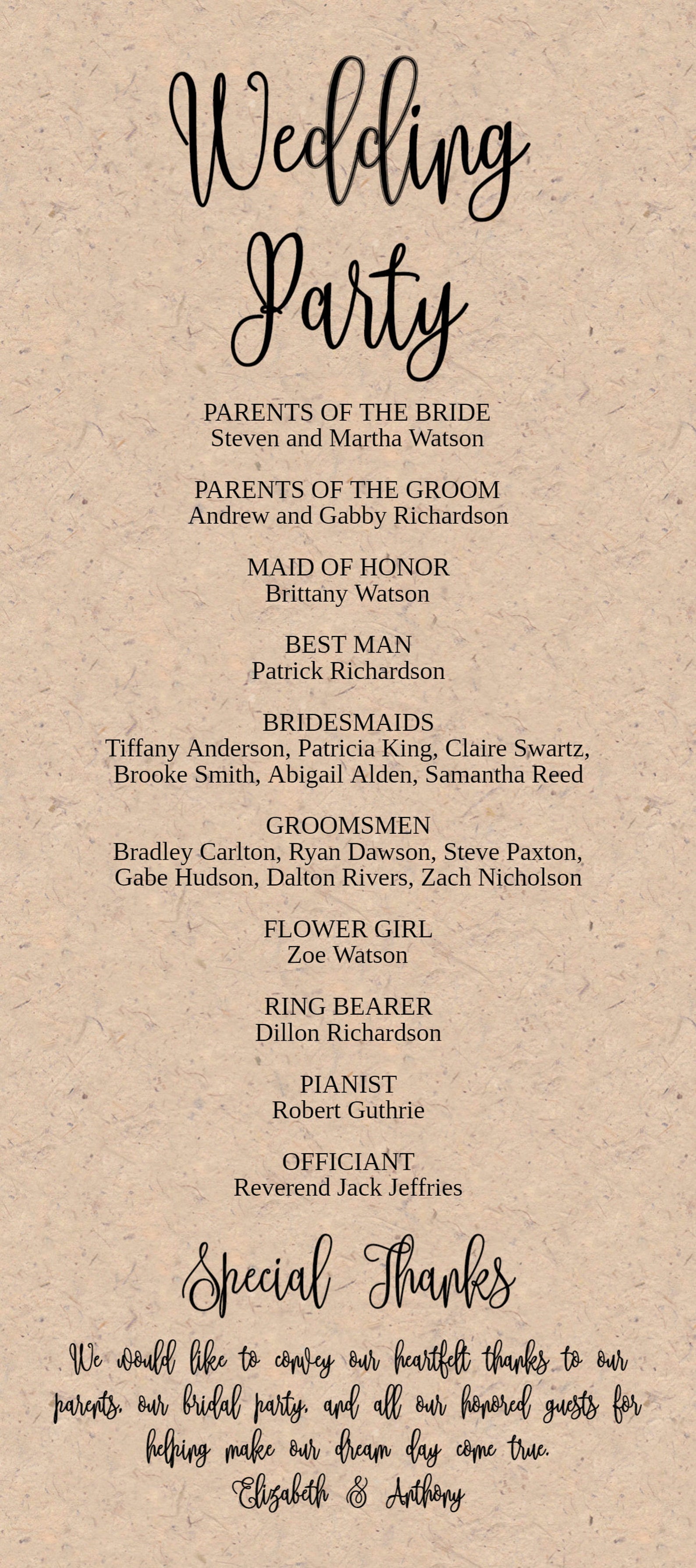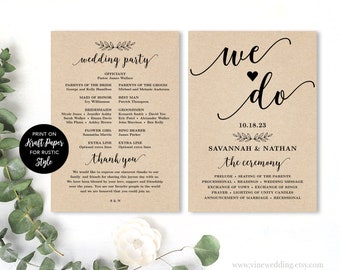 Natural Boho Printable Wedding Program Elegant Wedding Program