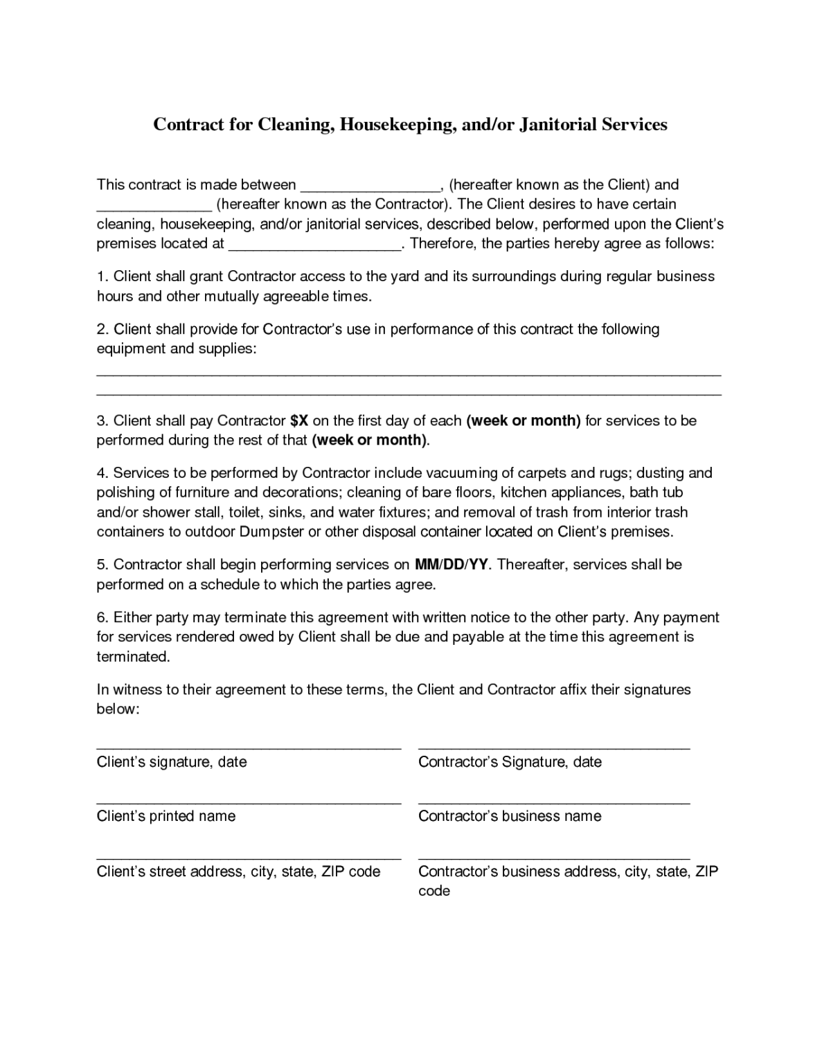 Free Printable Cleaning Contract Forms Printable Forms Free Online