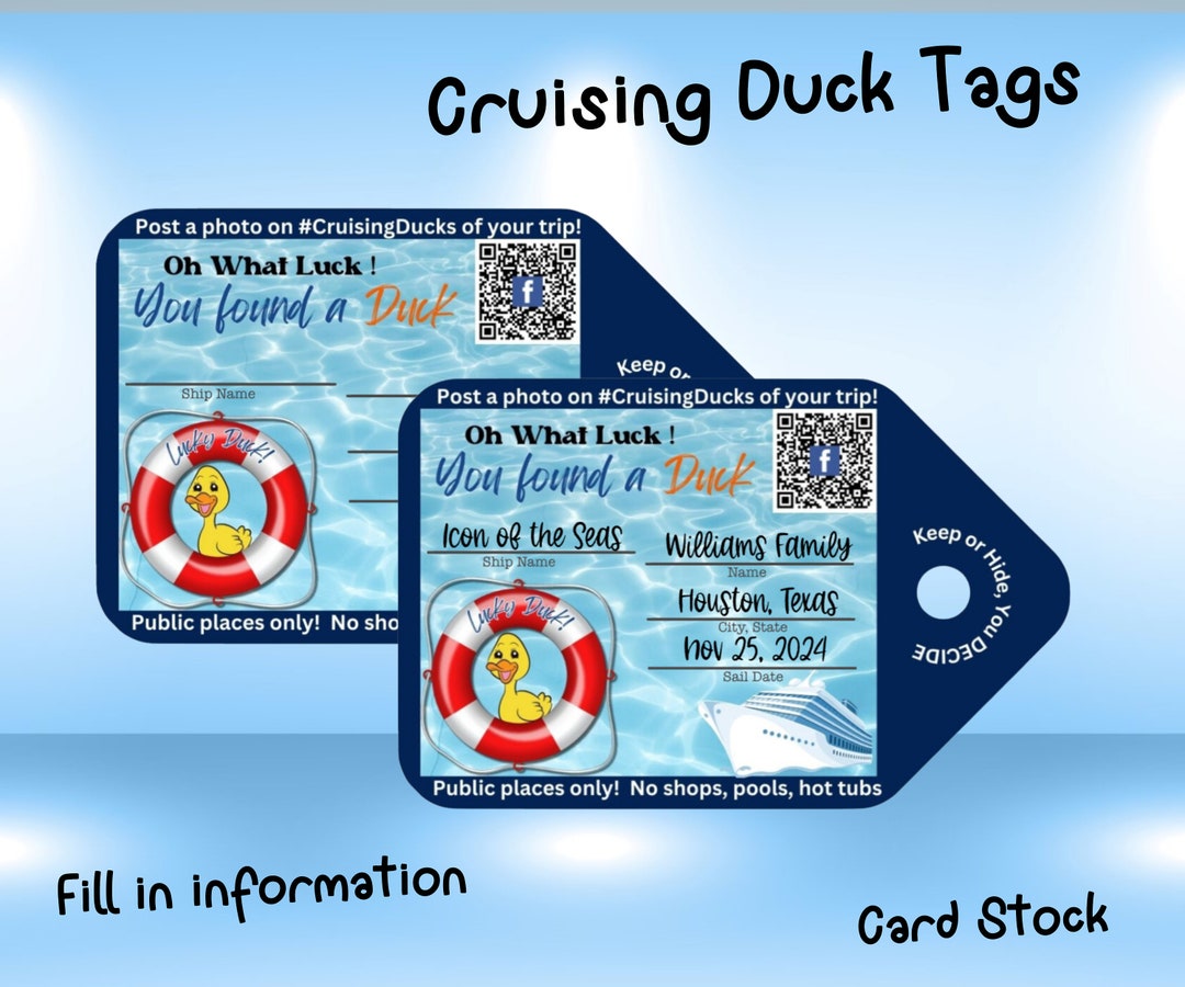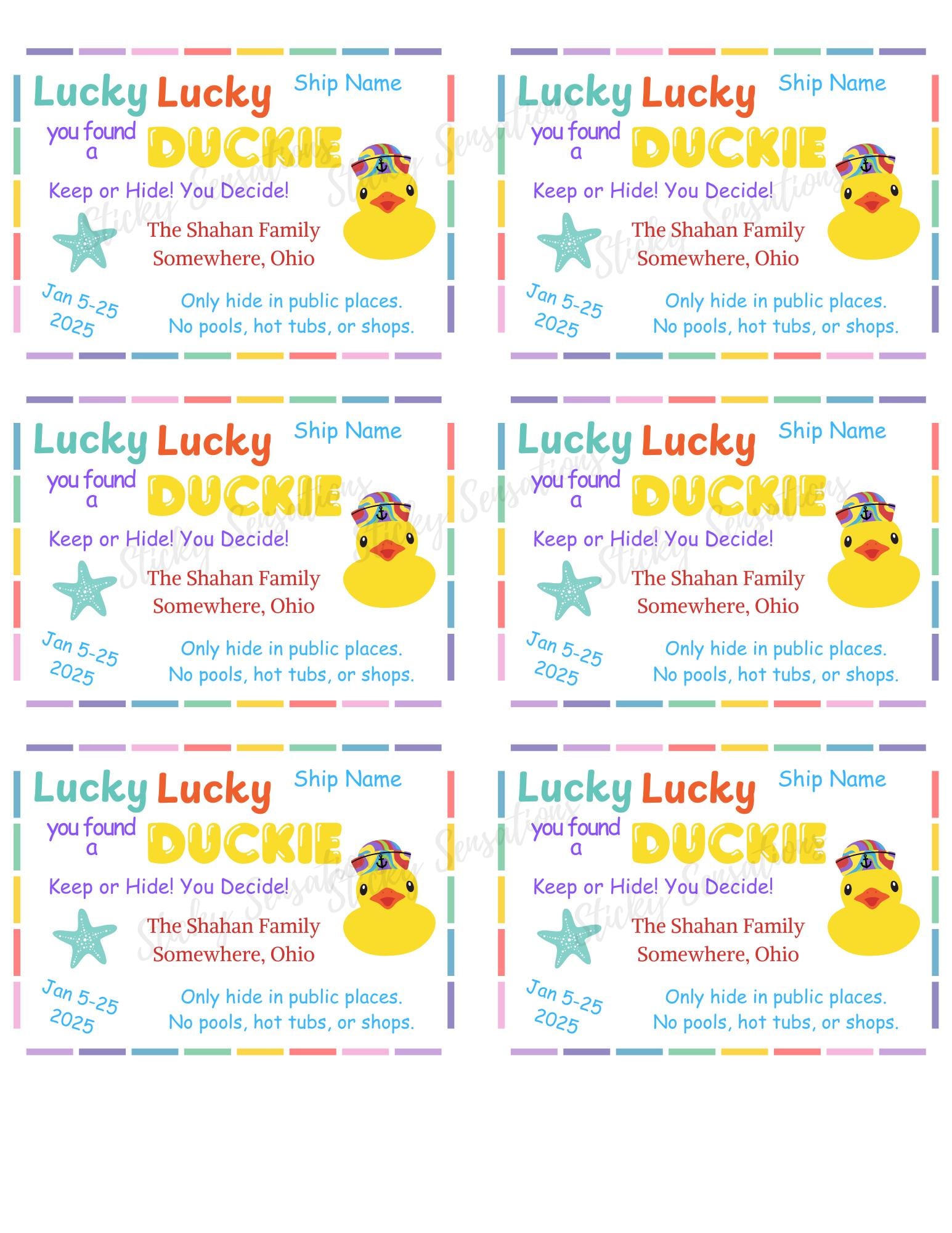 Cruising Duck Tags Printed Card Stock Ship Duck Tags Editable Tags