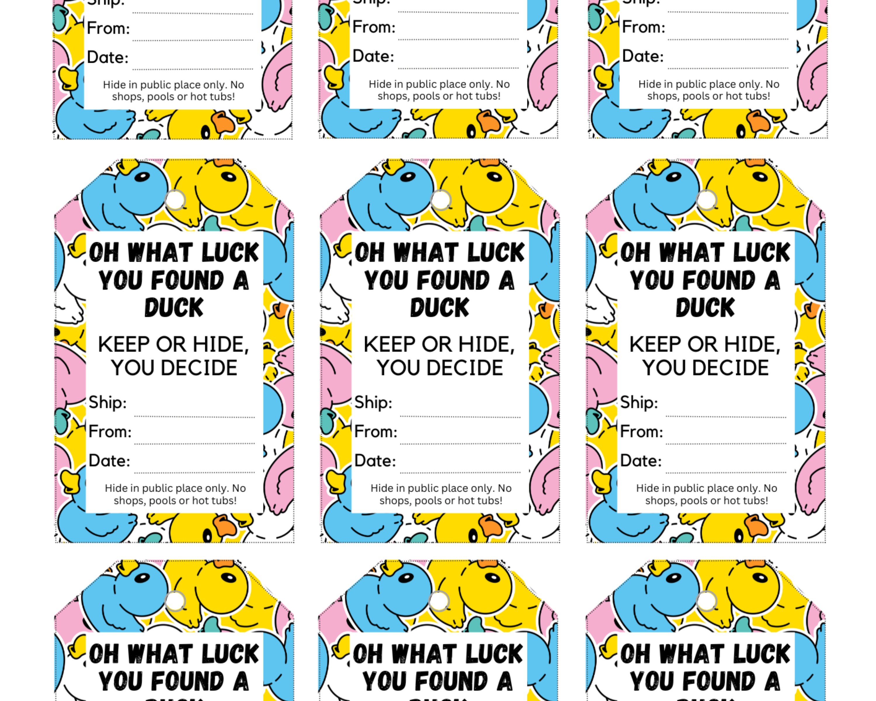 Printable Cruising Duck Tags: Hide Seek on the High Seas Instant