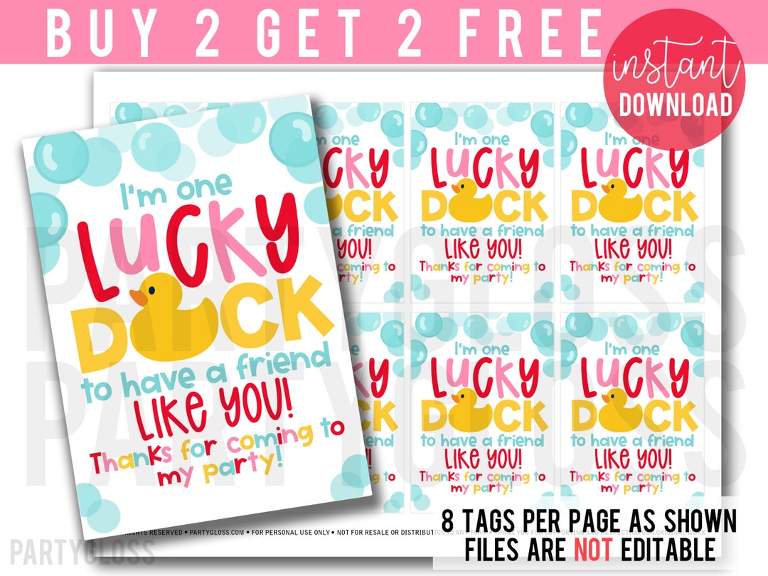 Rubber Duck Birthday Party Printable Favor Tags I #39 m One Lucky Duck
