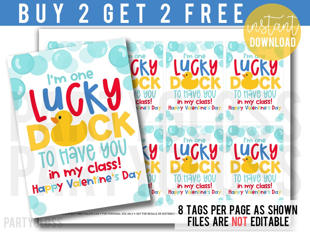 FREE Lucky Duck Valentine Printable Gift Tags Cards (PDF)