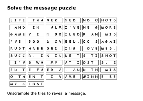Solve the message puzzle from Michael Jordan Teaching Resources