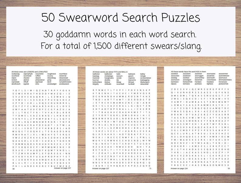 Printable Cussing Crossword Swearword Search and Slang Sudoku With