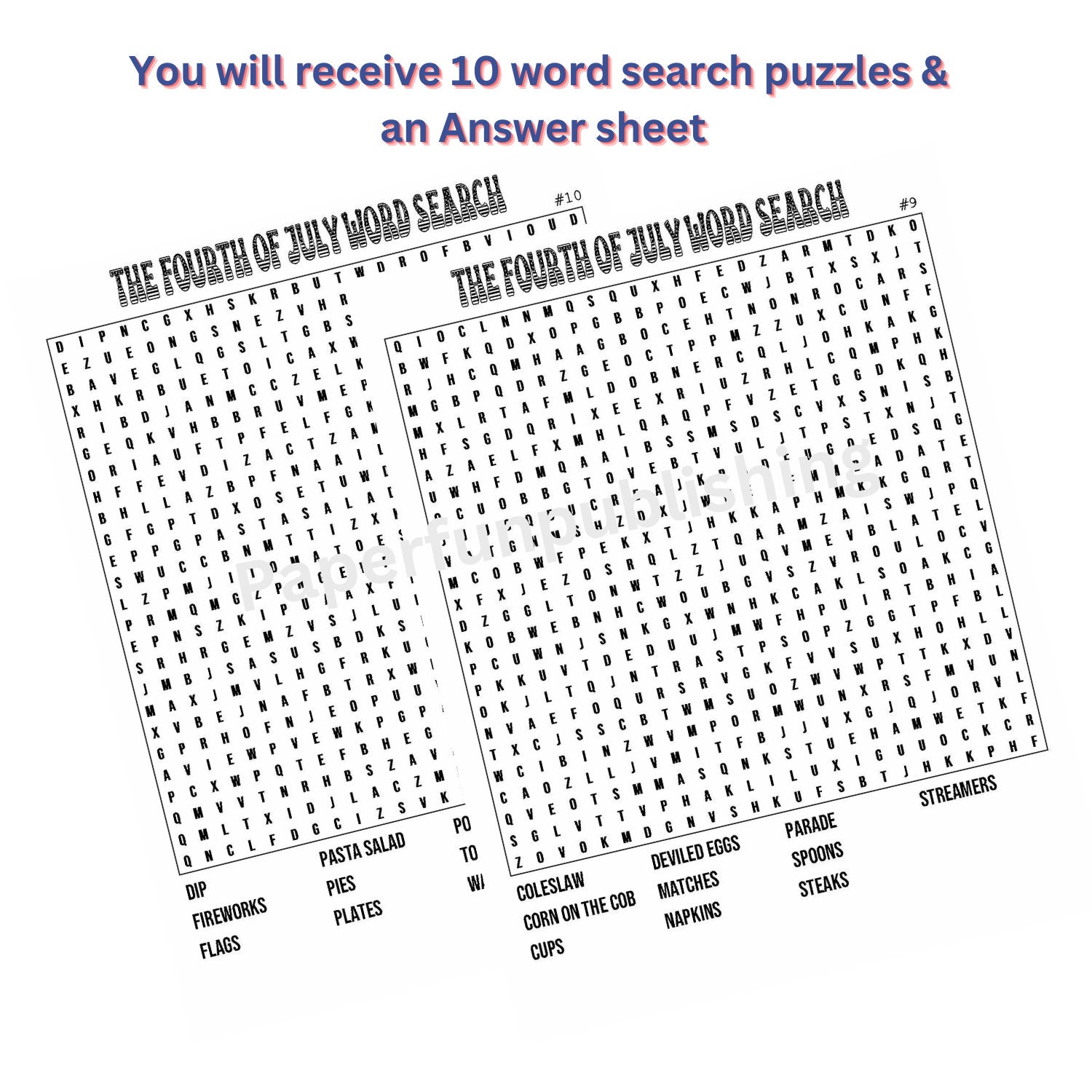 July the 4th Word Searches 10 Printable Instant Download Puzzles 4th