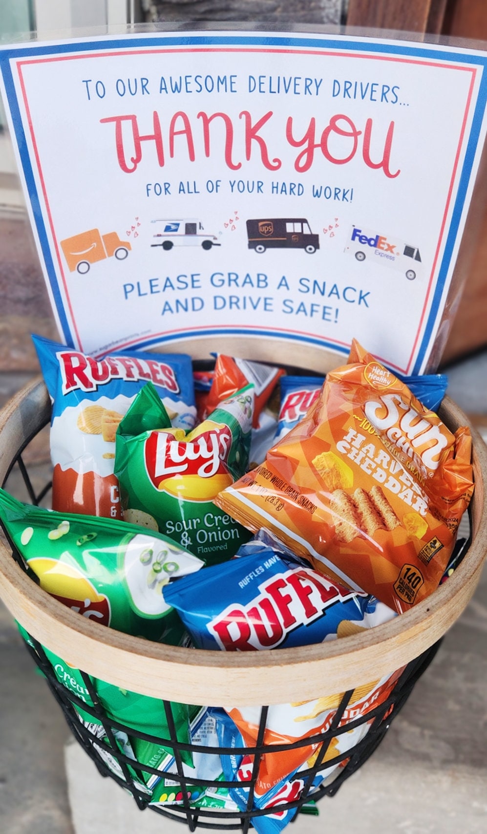 quot Thank You Delivery Drivers quot Sign and Snack Basket Life with Less Mess