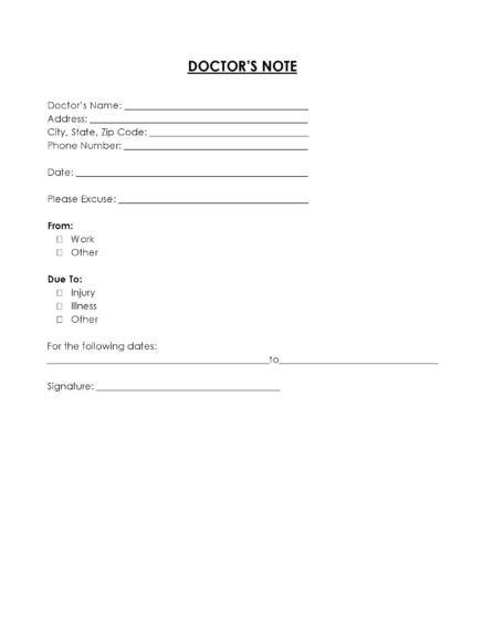 Real Doctor #39 s Note for Work Template Printable PDF Word Format