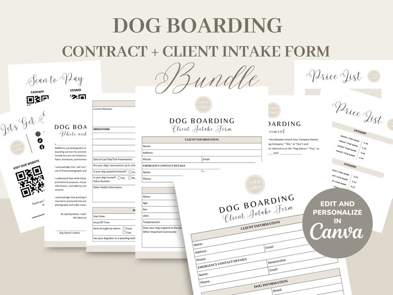 Dog Boarding Service Agreement/contract Template Editable Printable