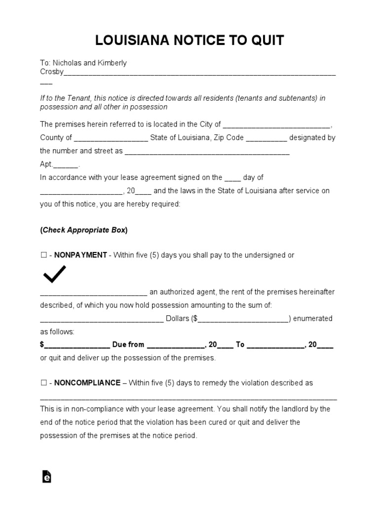 Editable Louisiana Eviction Notice Template PDF Tacitproject