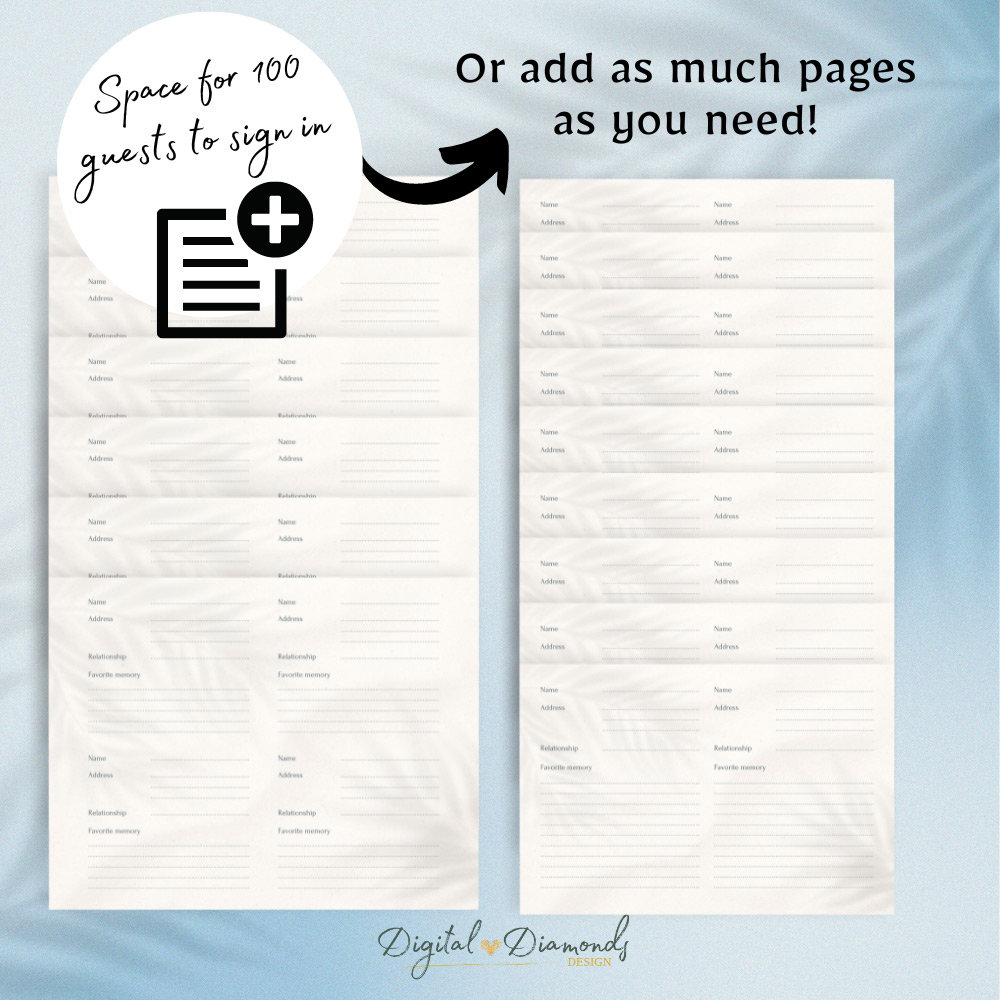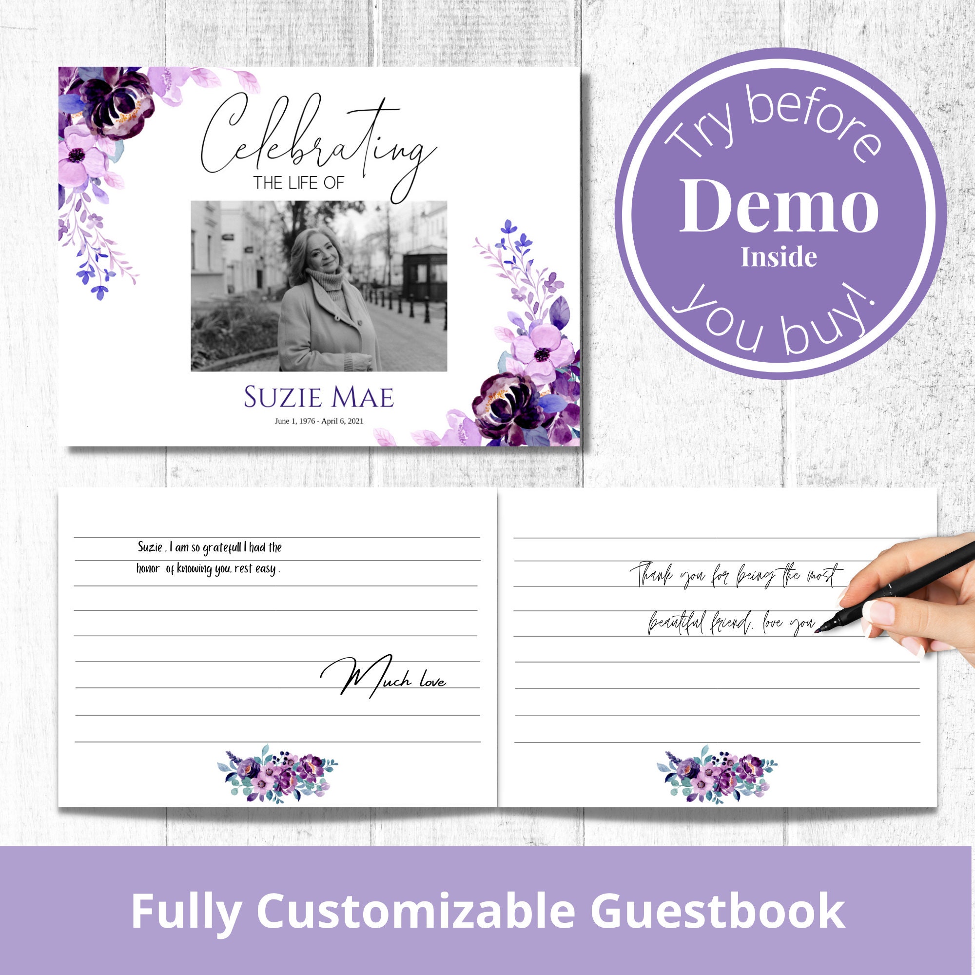 Editable Funeral Guest Book Template Funeral Favors Etsy