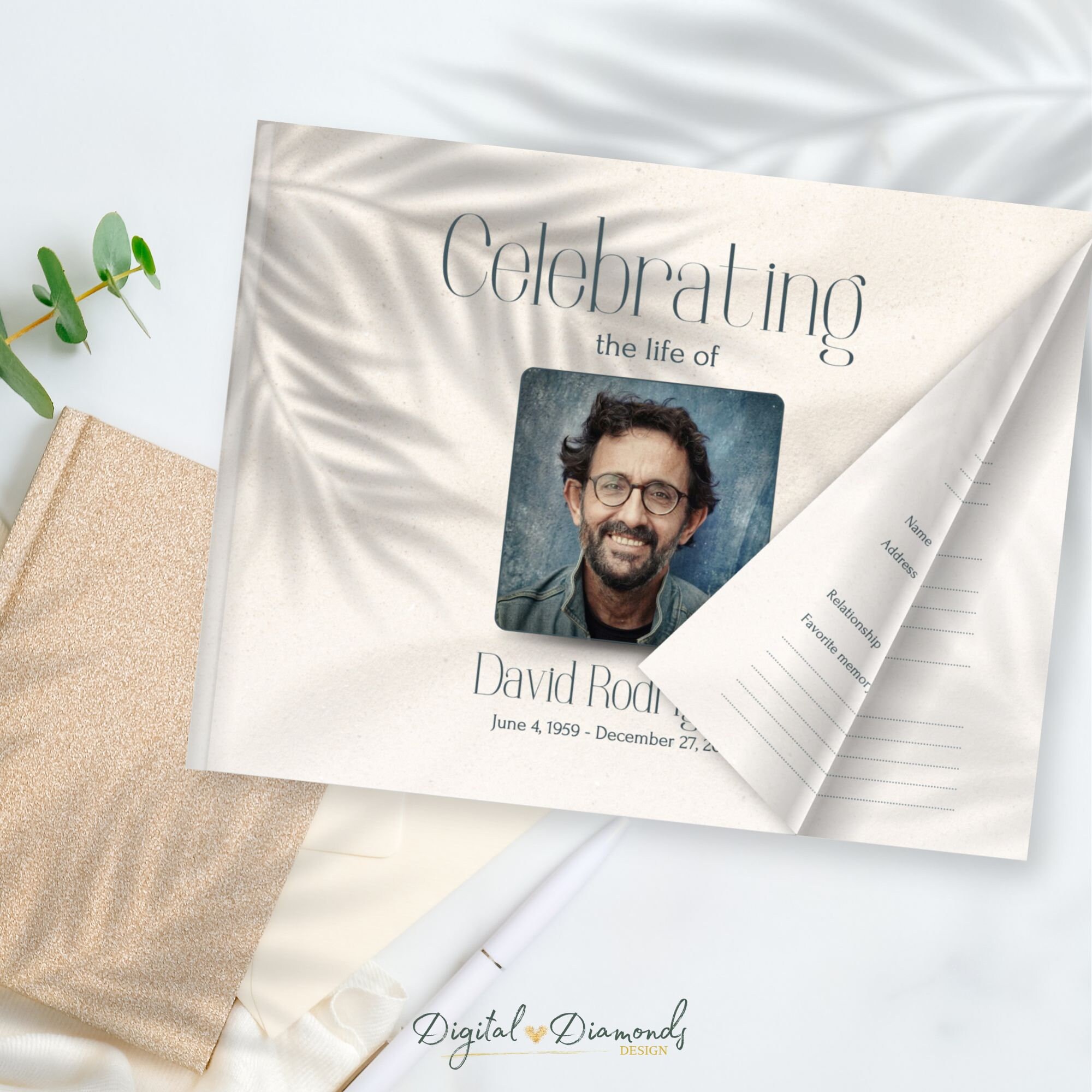 Funeral Guest Book Template Memorial Sign in Book Editable in Canva