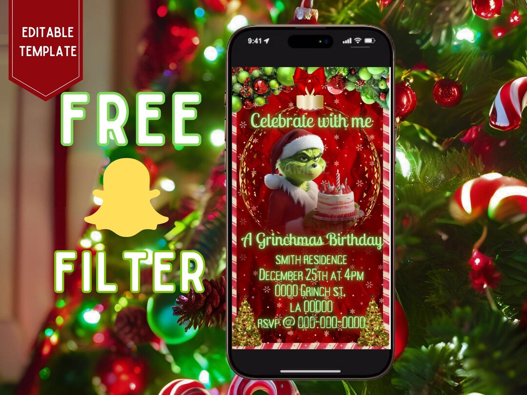 Editable Grinch Birthday Invitation Merry Grinchmas Invitation Grinch