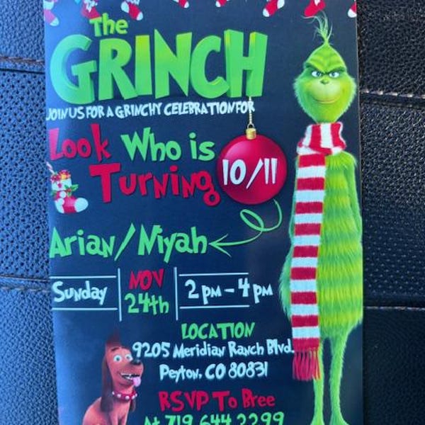 Grinch Birthday Invitation Printable Grinch Invitation Etsy