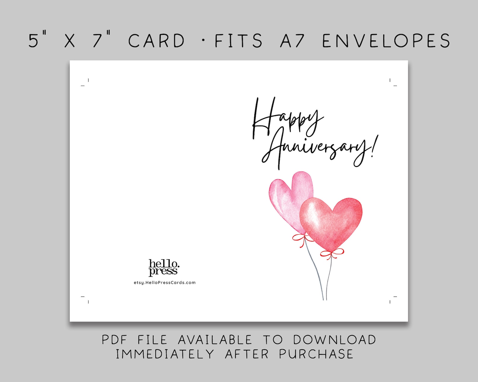 Printable Anniversary Card / Happy Anniversary / Instant Download / 5x7