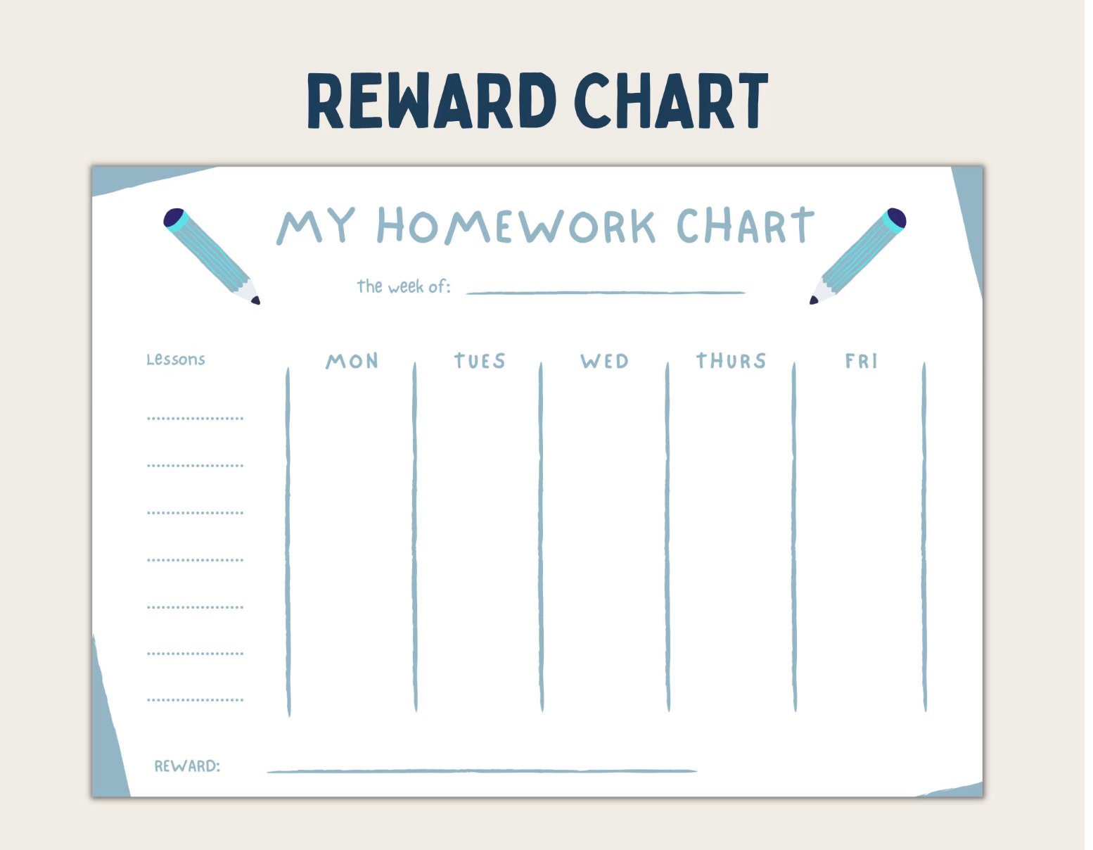 Printable Homework Reward Chart Daily and Weekly Homework Chart Etsy