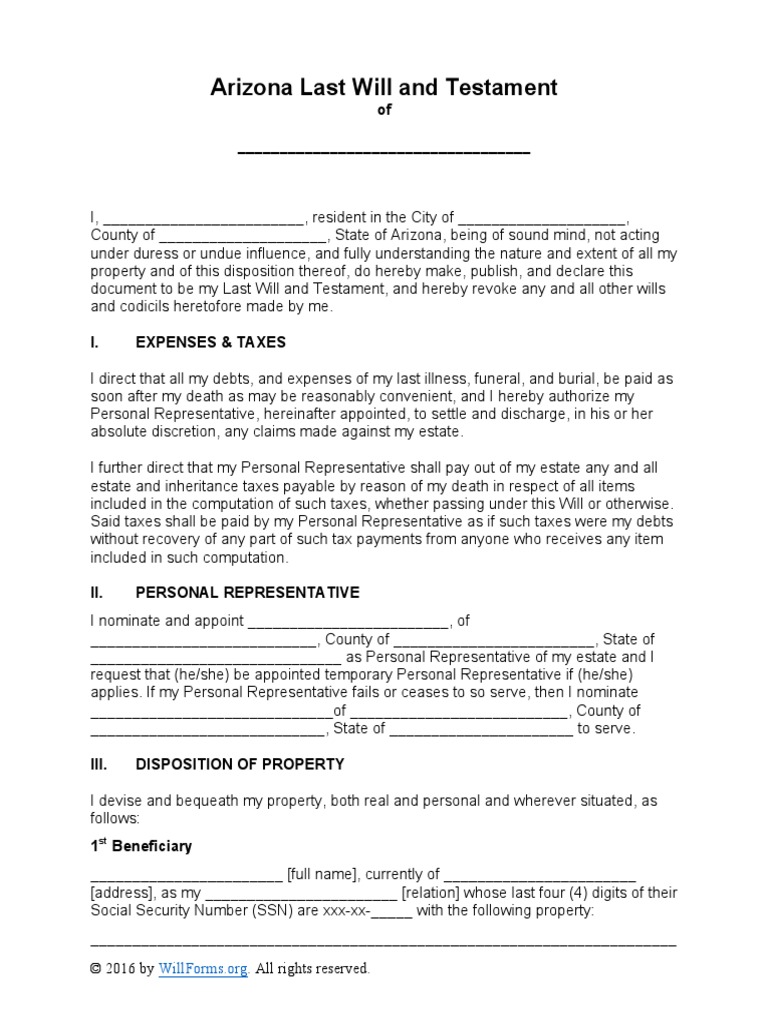 Last Will And Testament Template Arizona Start planning your estate today