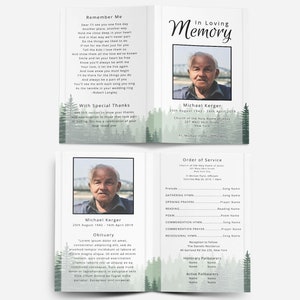 Forest Memorial Photo Collage Template and 4 Page Funeral Program