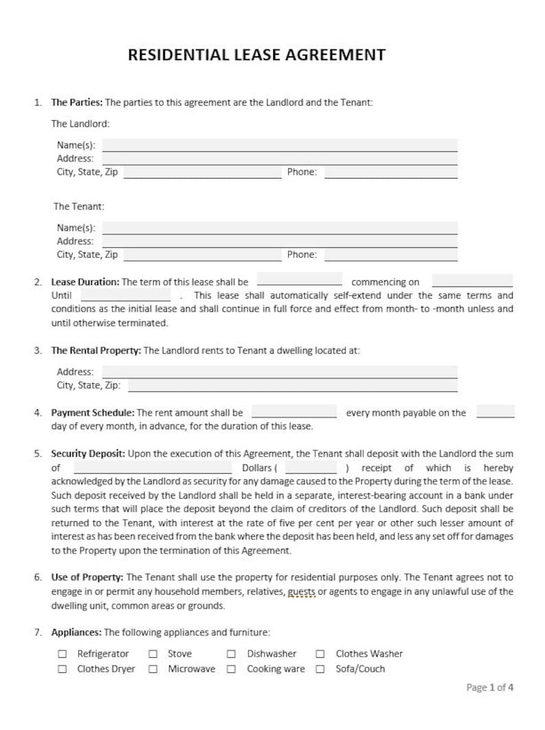 Free Printable Residential Rental Agreement Forms FREE Printable A Z