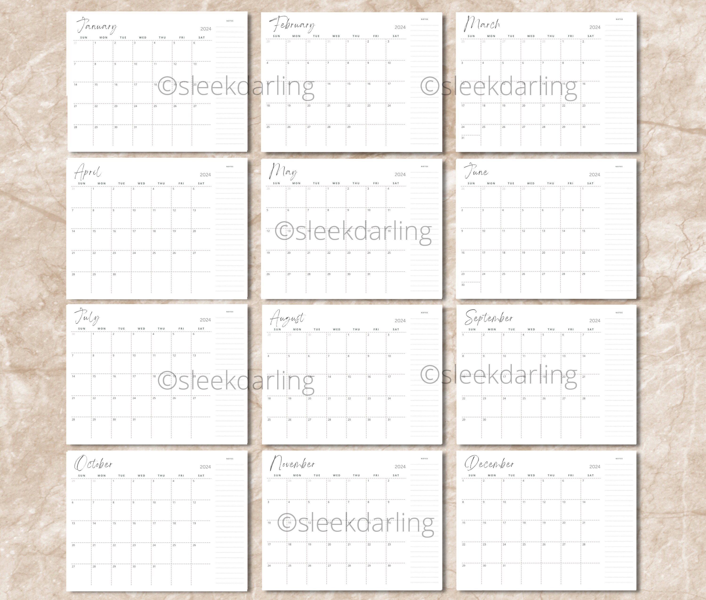 Basic 2024 Editable Calendar Printable Calendar Letter Size Etsy