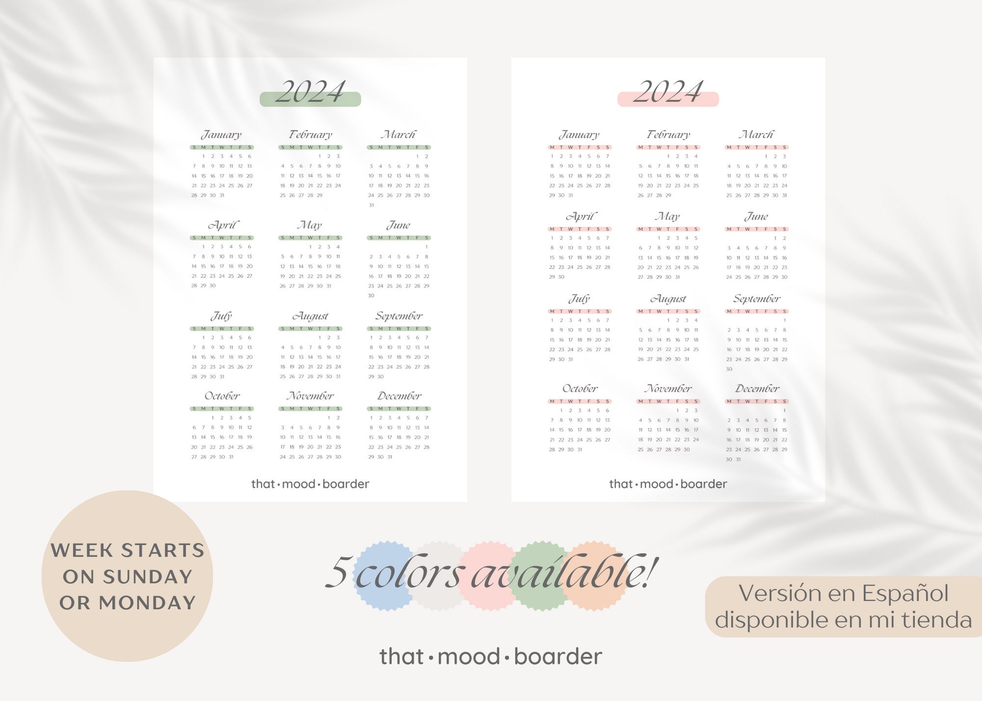 2024 Calendar Printable Calendar Digital Download A4 A5 and Letter