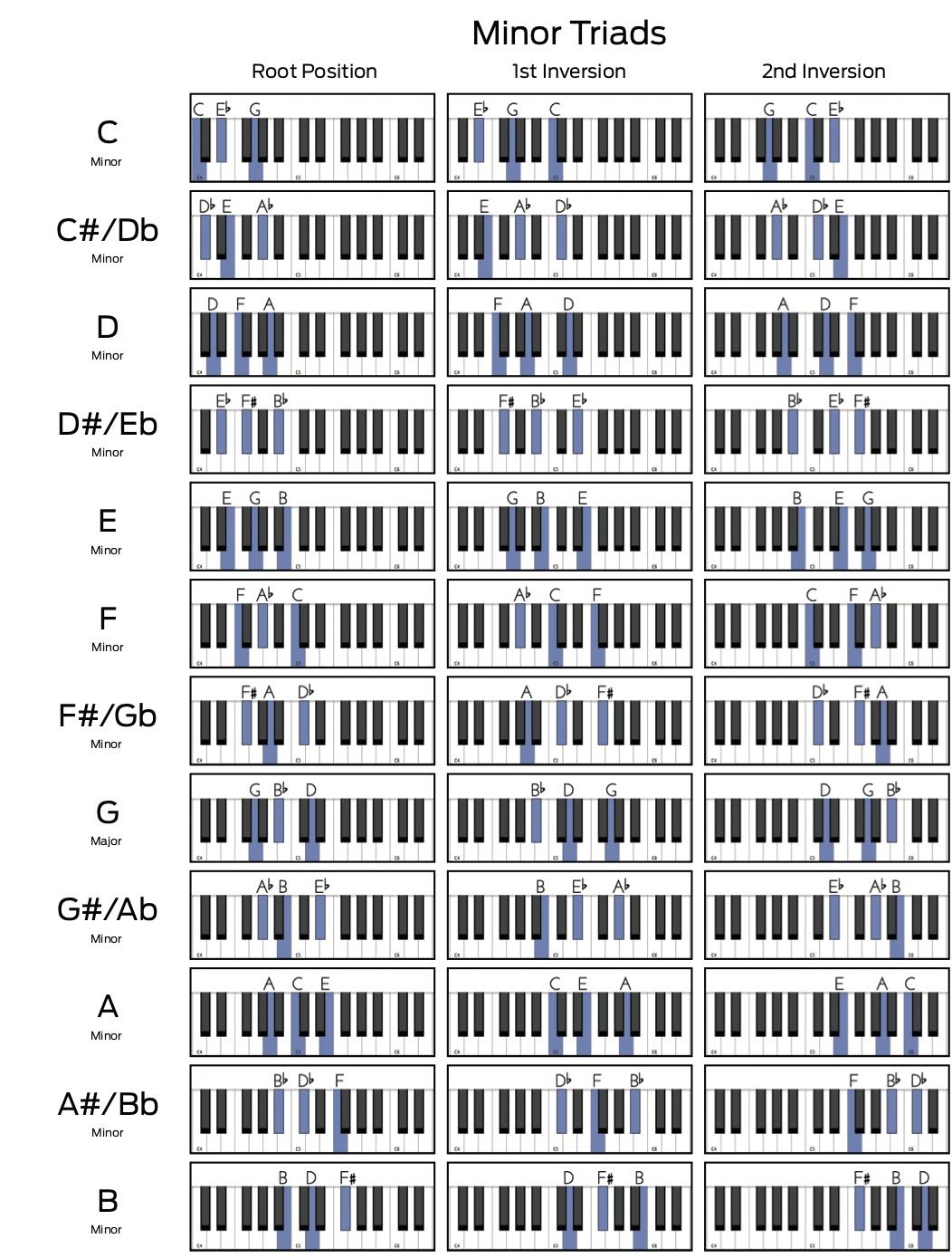 Piano/Keyboard Triad Chord Chart: Major and Minor Triads in Root