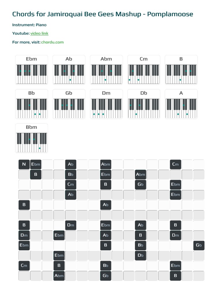 Chordu Piano Chords Jamiroquai Bee Gees Mashup Pomplamoose Chordsheet