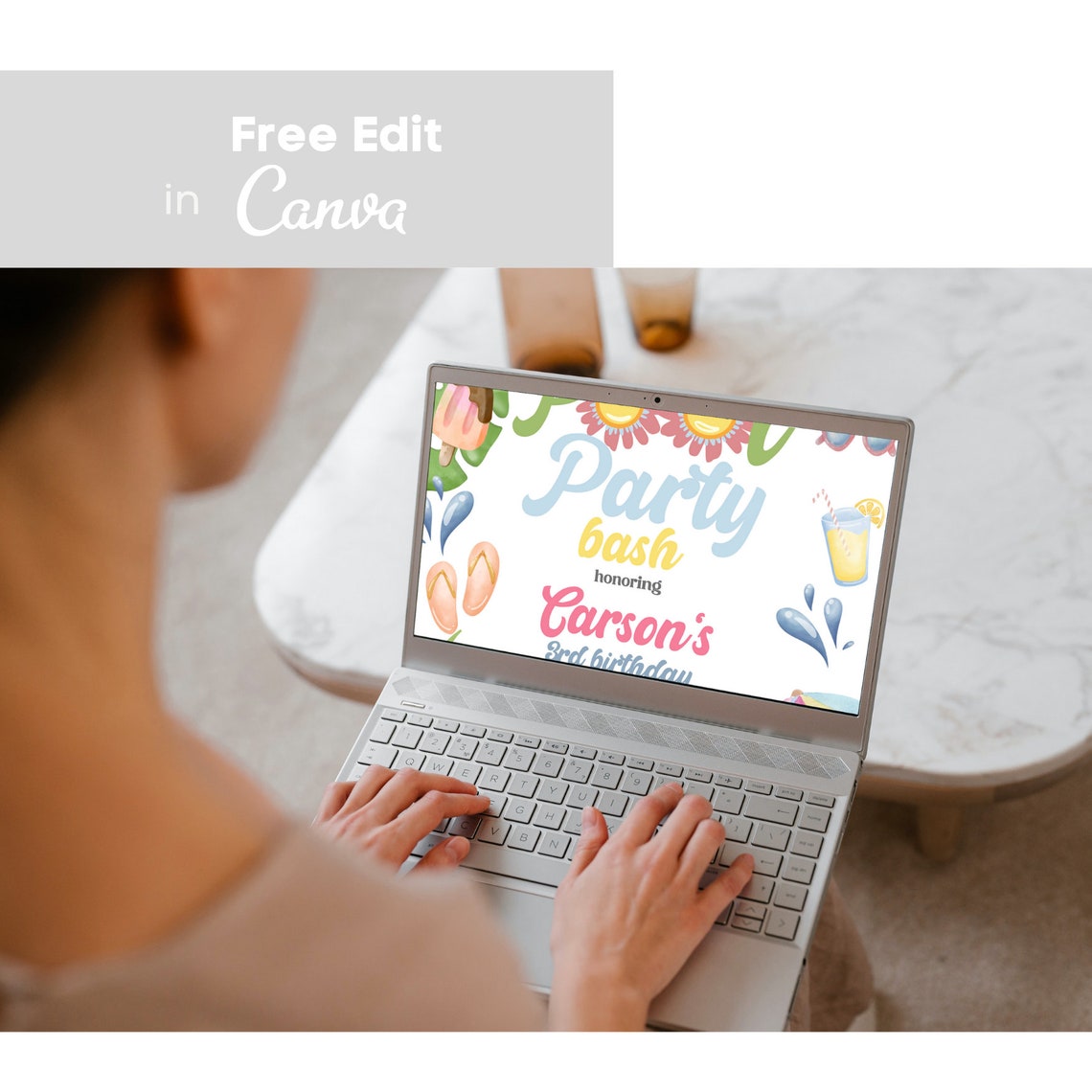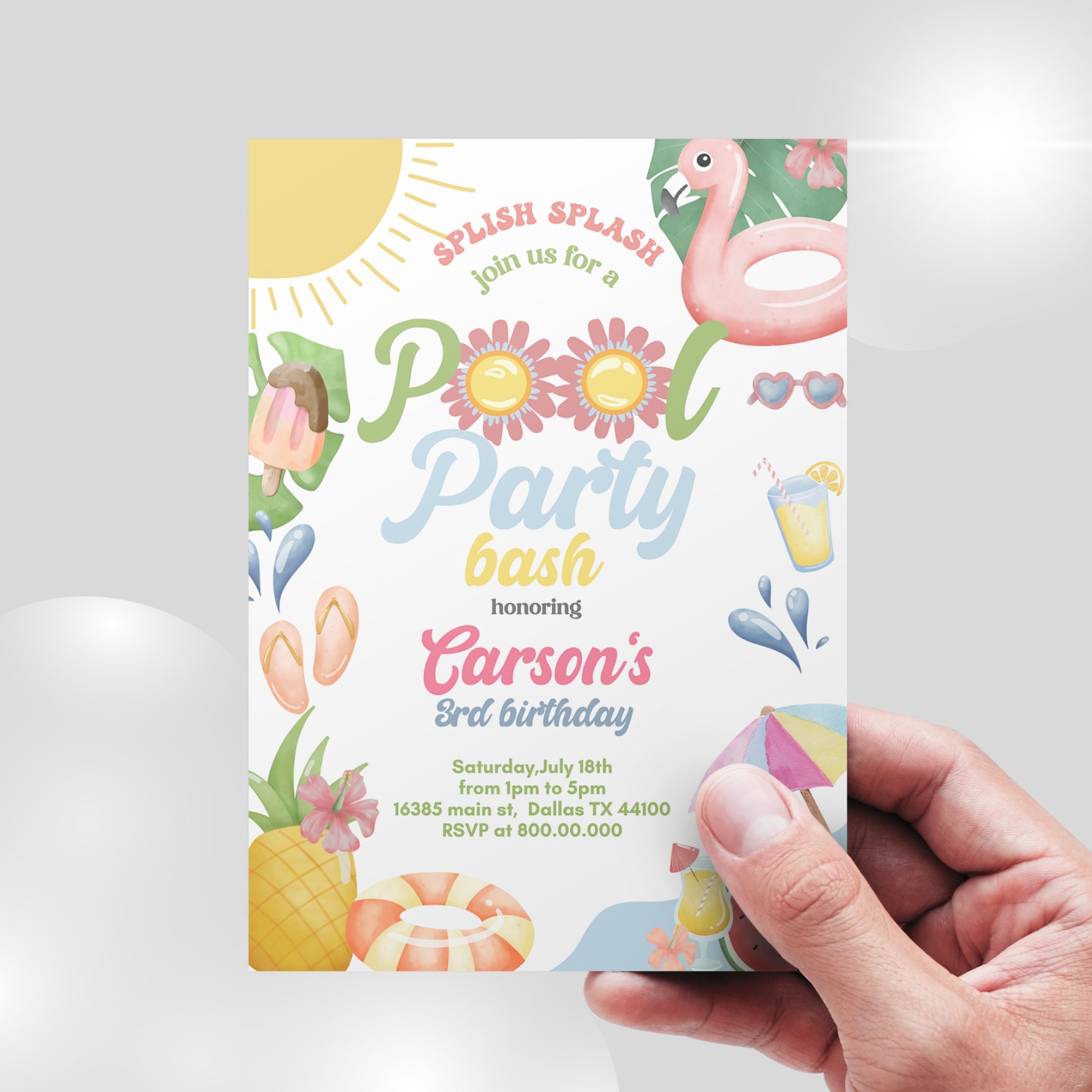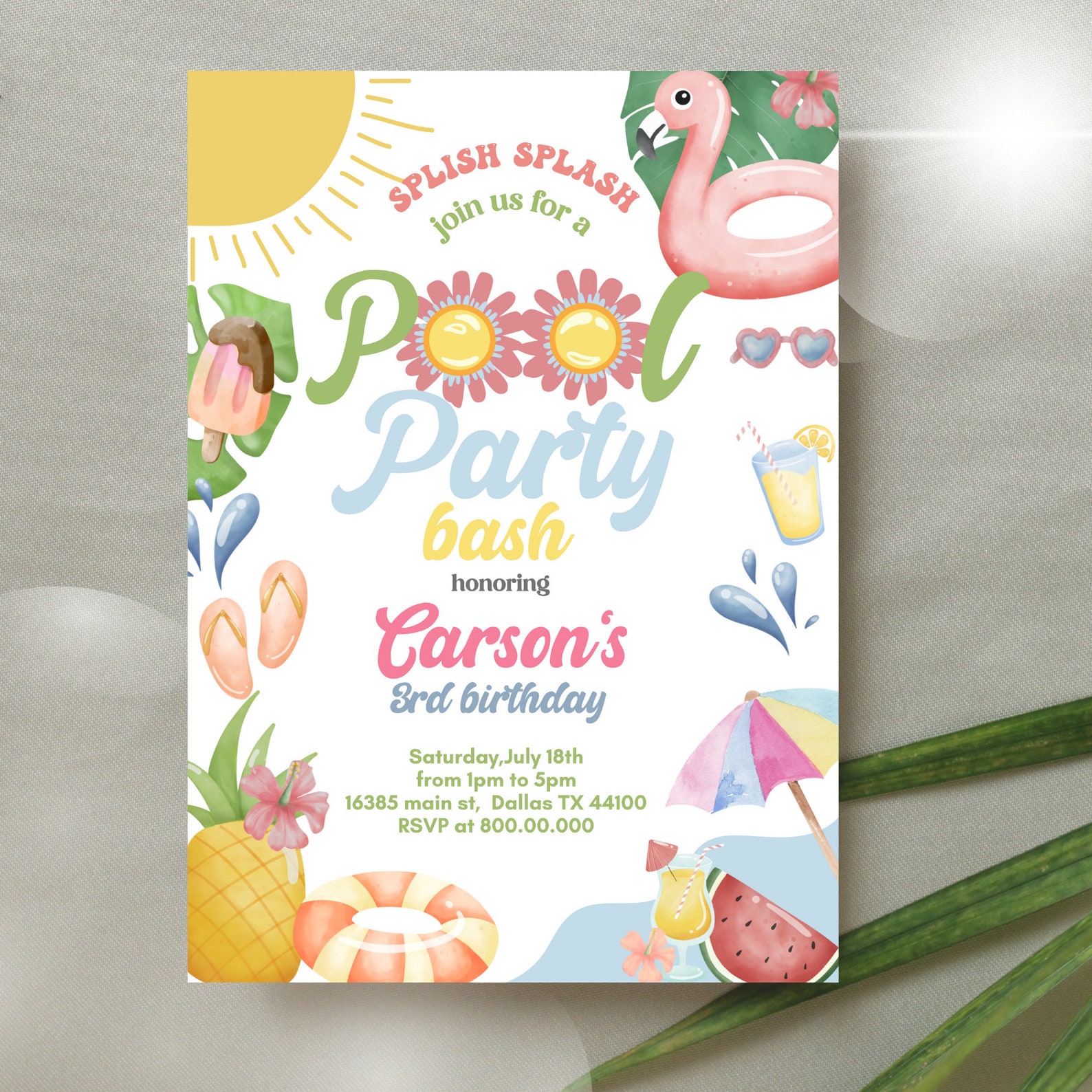 Editable and Printable Pool Party Invitation Template Tropical Splash