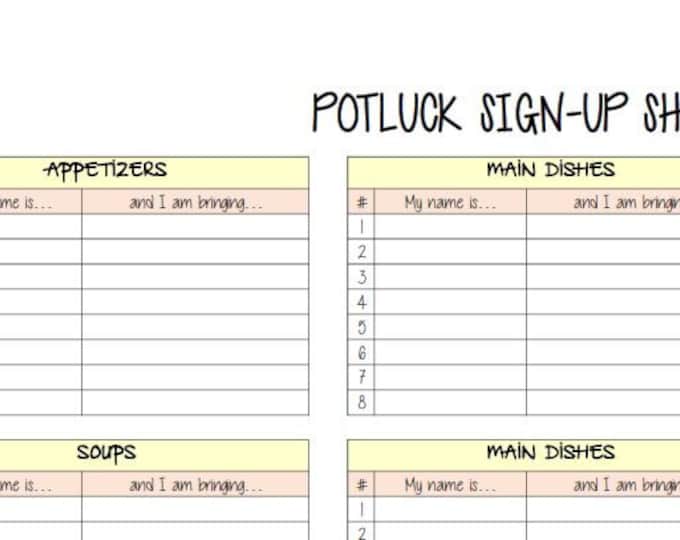 Potluck Sign Up Sheet Printable Template Potluck Dinner Party Etsy