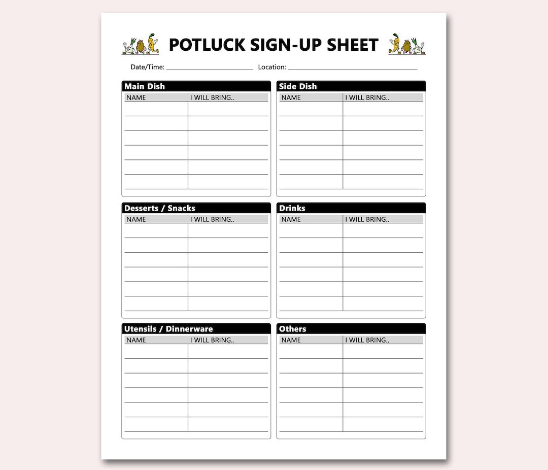 Potluck Volunteer Sign Up Printable Template: Organize Your Event in 2024