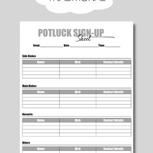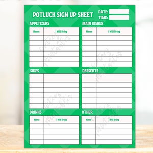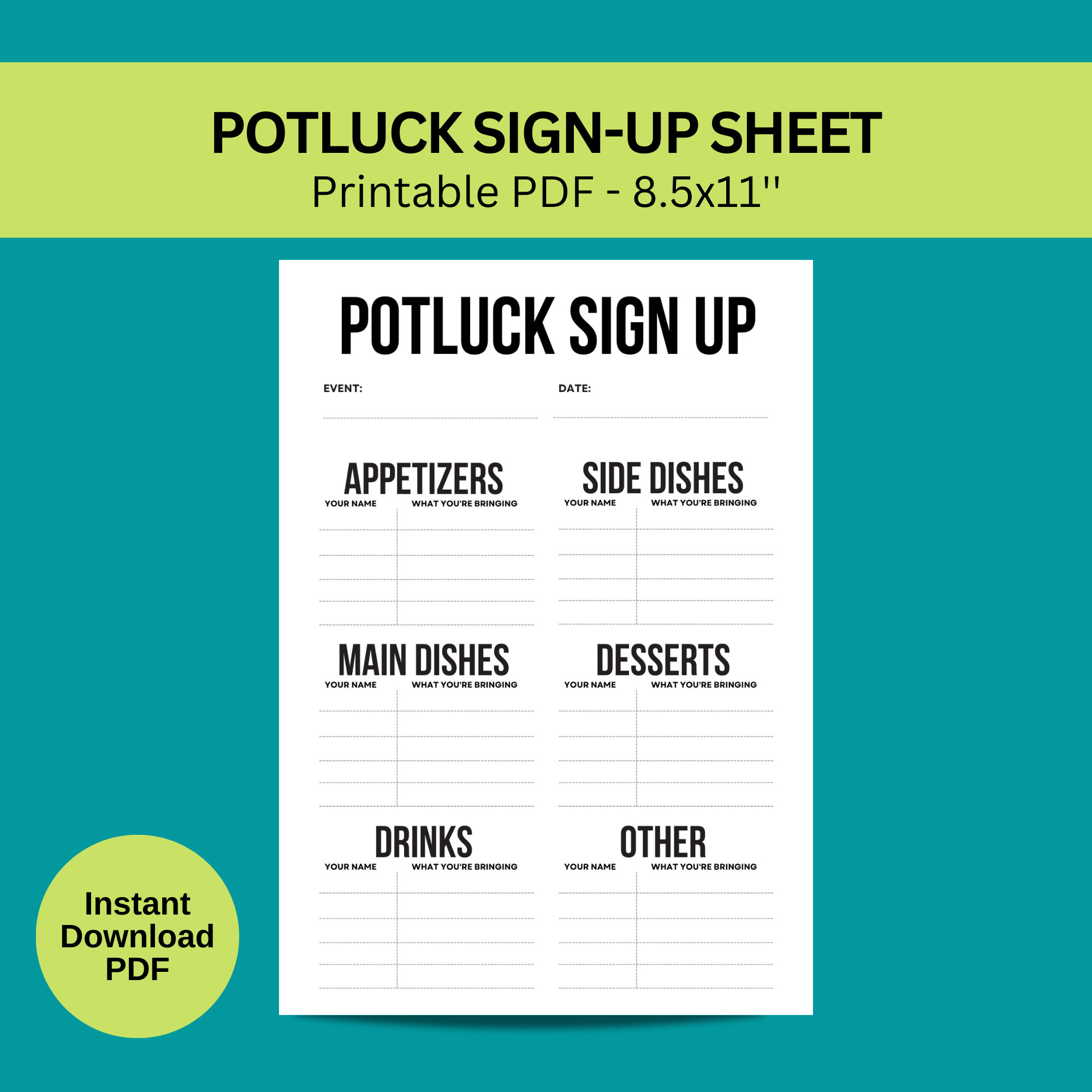 Potluck Sign up Sheet Printable PDF 8 5x11 #39 #39 Etsy