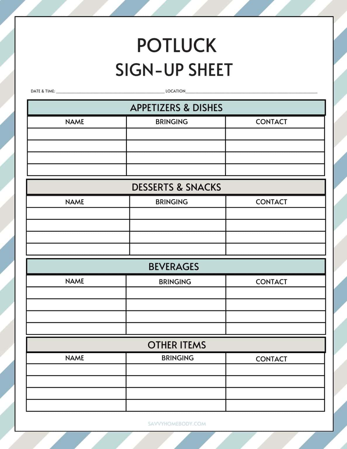37 Best Potluck Sign up Sheets (For Any Occasion) ᐅ TemplateLab
