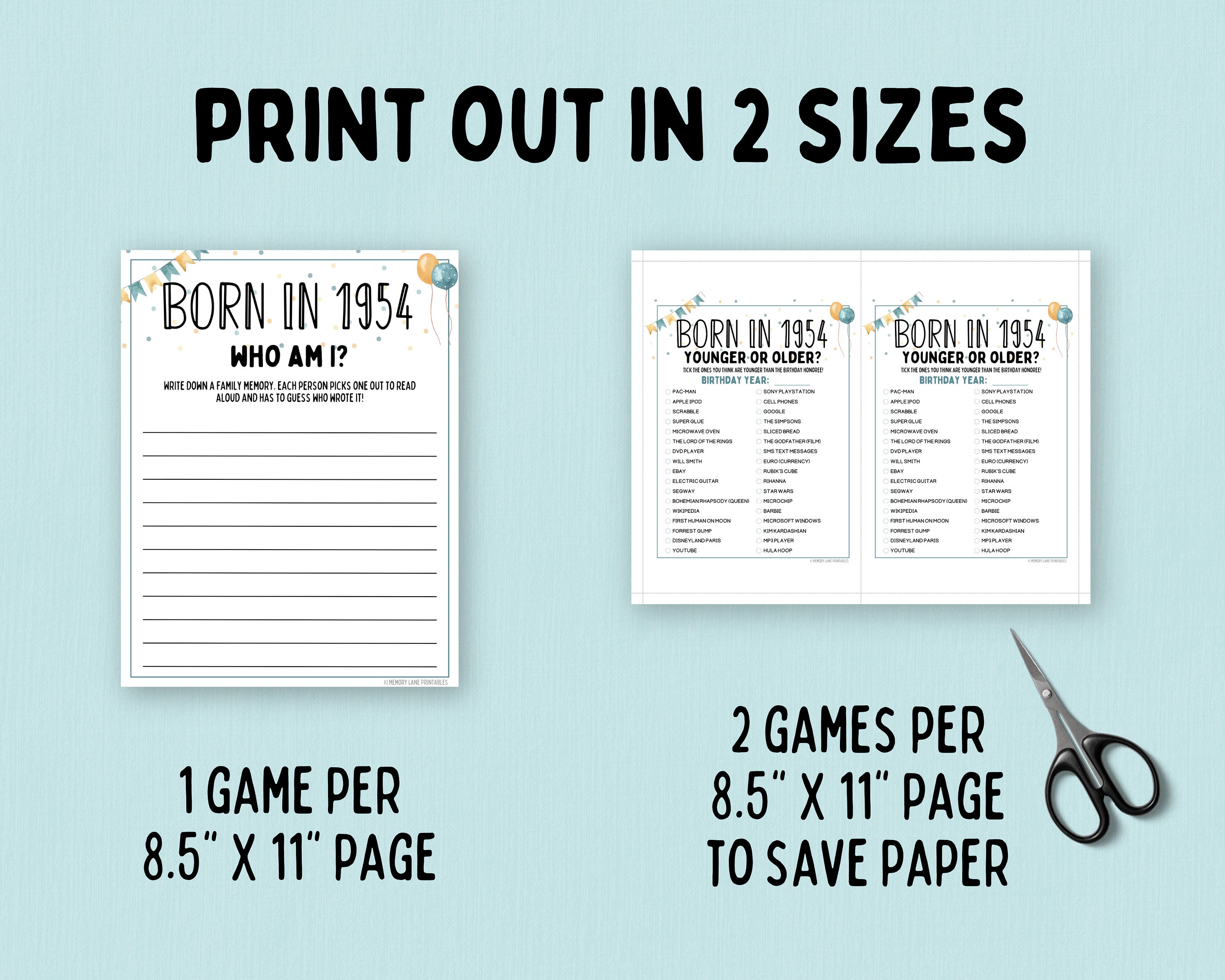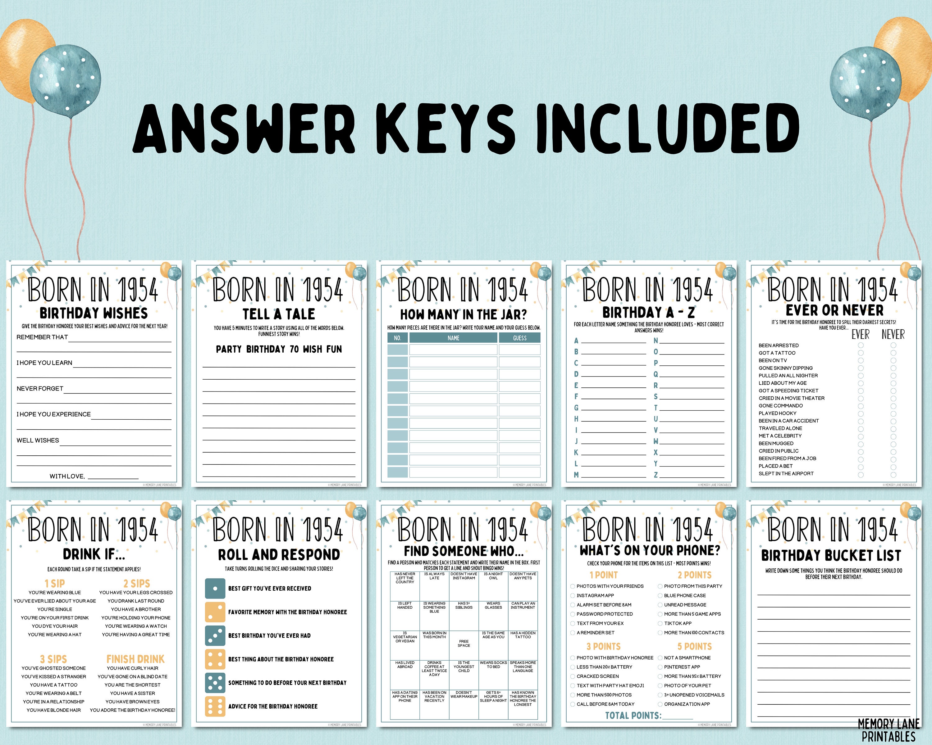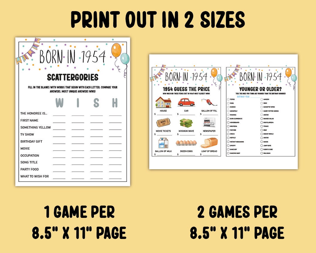 70th Birthday Party Games Bundle Born in 1954 Games 70th Birthday Games