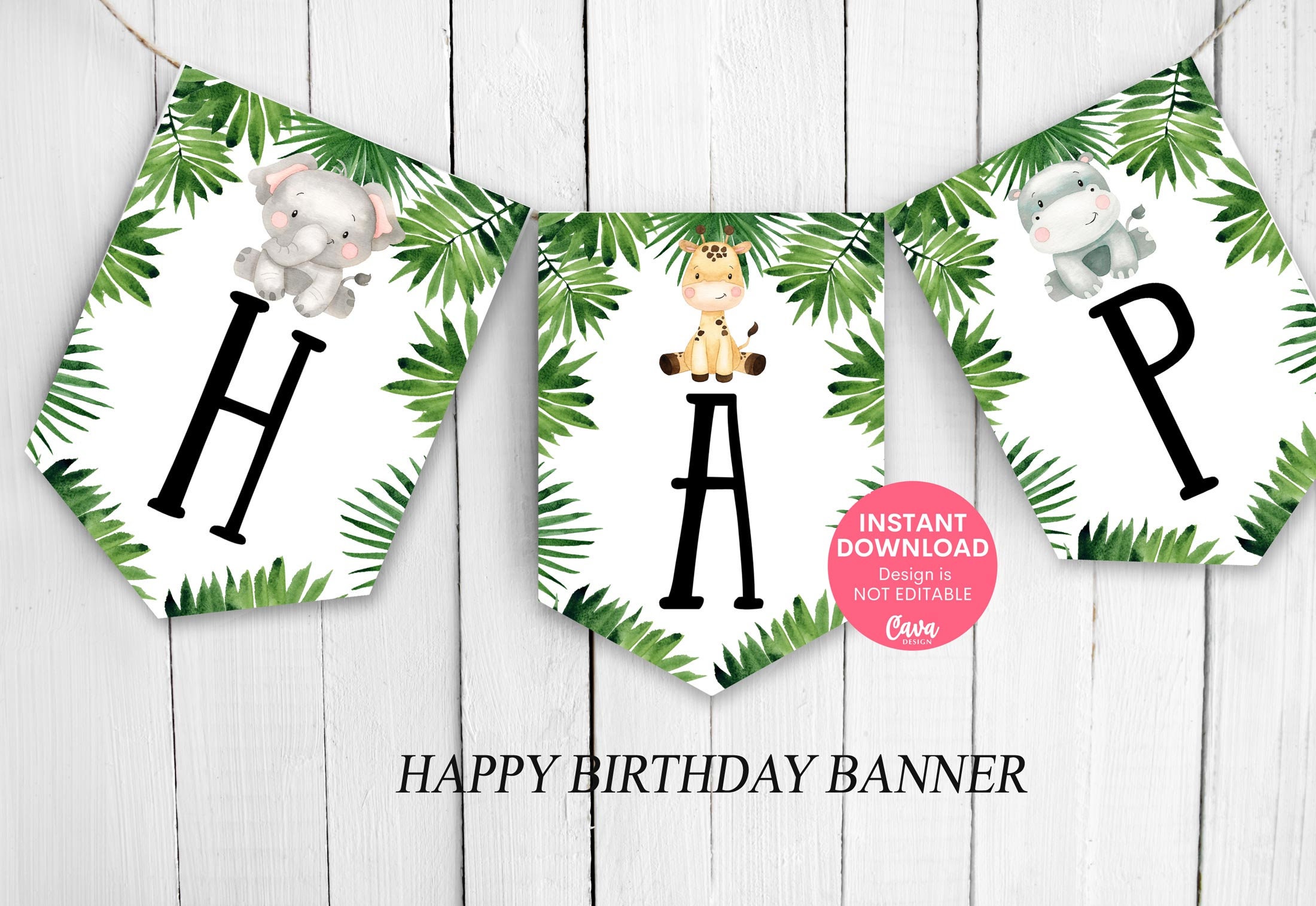 Editable Safari Animals Birthday Banner Safari Baby Shower Decor
