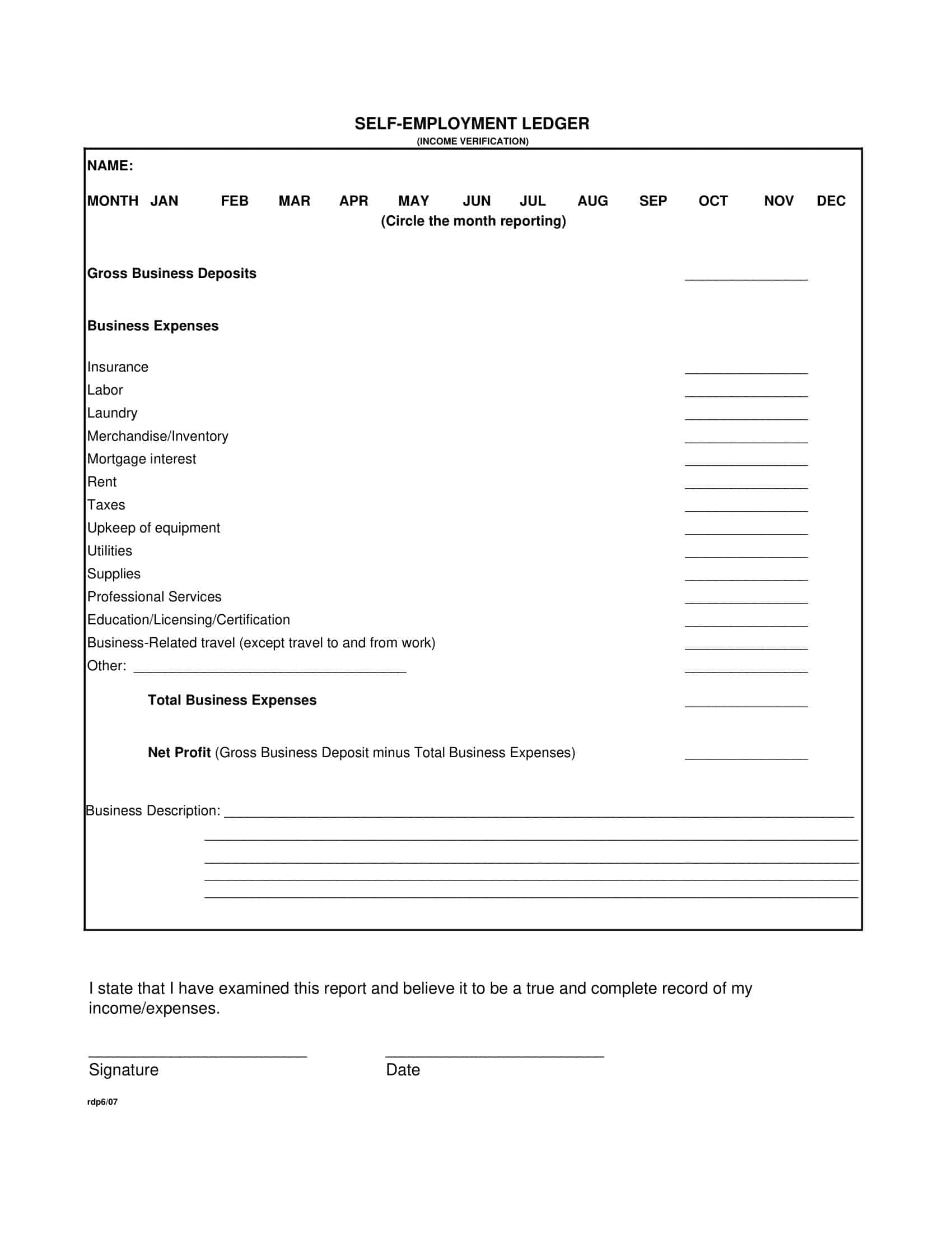 Free Printable Self Employment Ledger