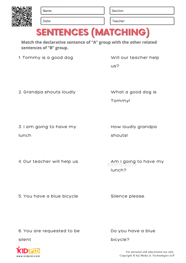 Match Sentences Free Printable Worksheets for Grade 2 Kidpid